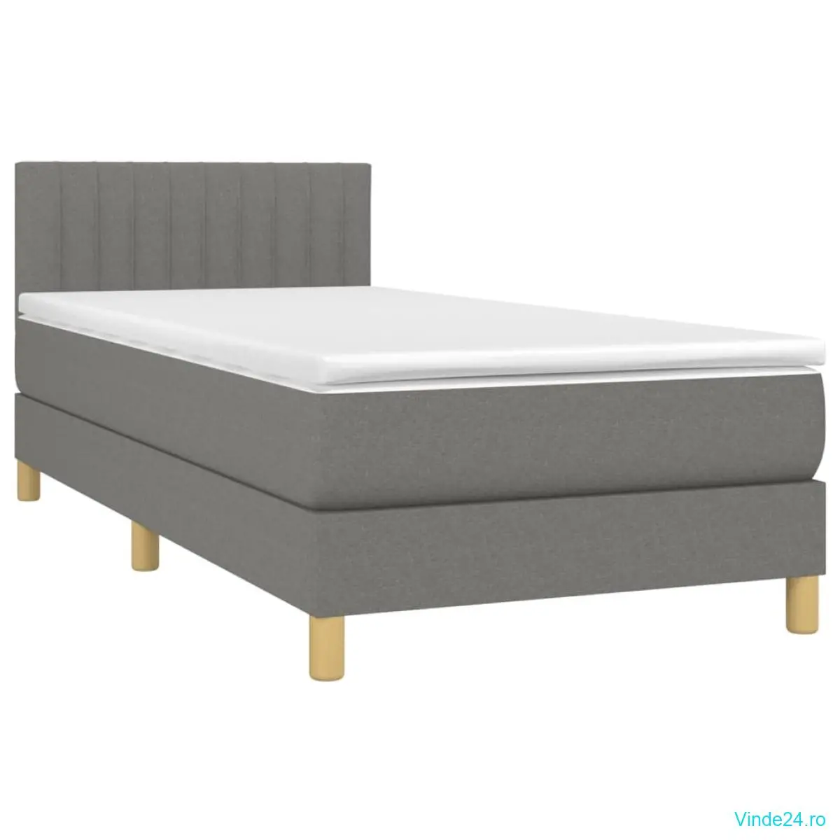 vidaXL Pat cu arcuri, saltea și LED, gri închis, 80x200 cm, textil