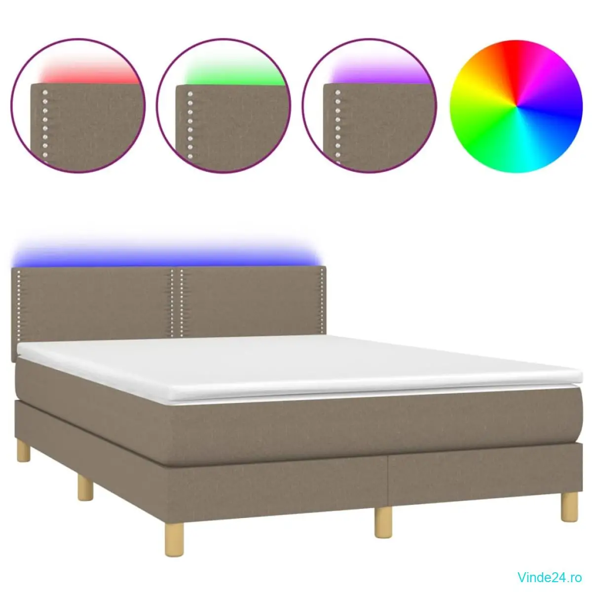 vidaXL Pat cu arcuri, saltea și LED, gri taupe, 140x190 cm, textil
