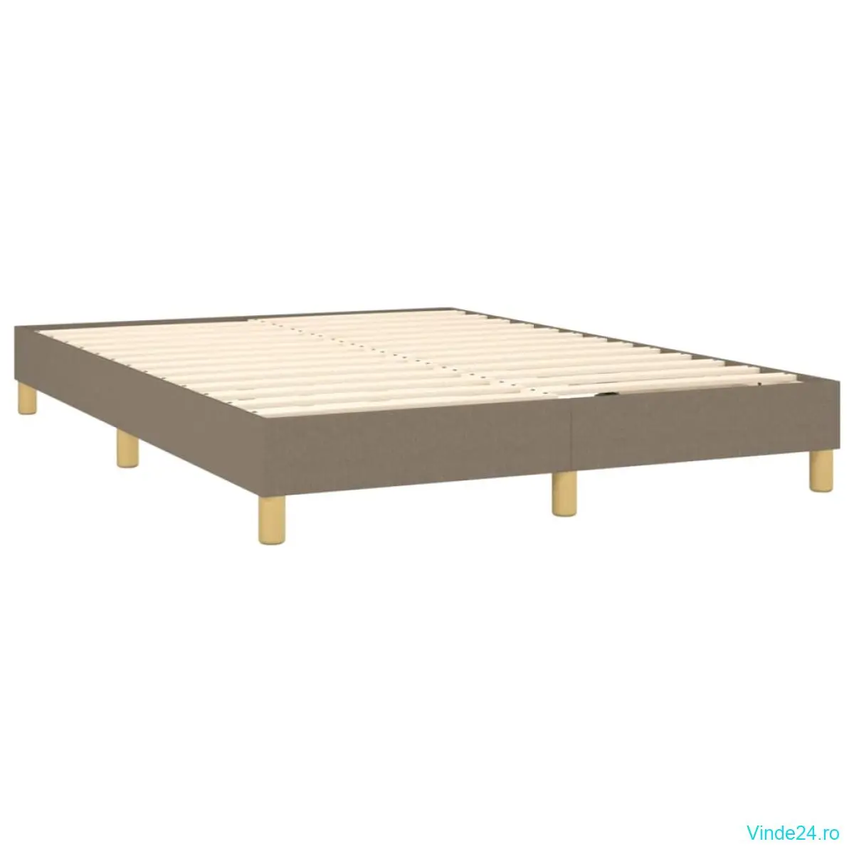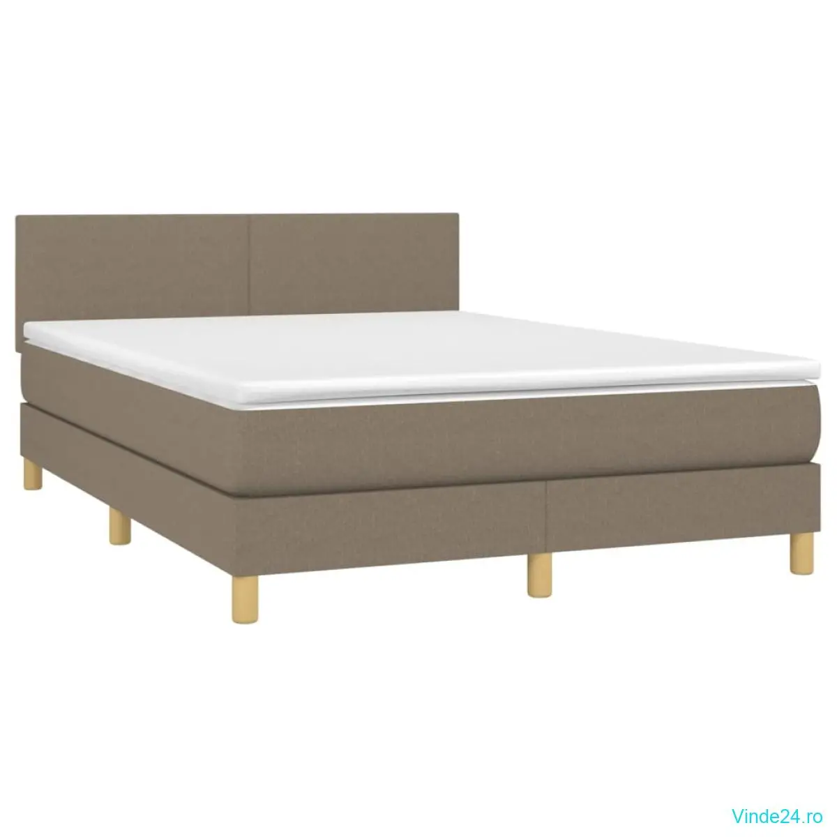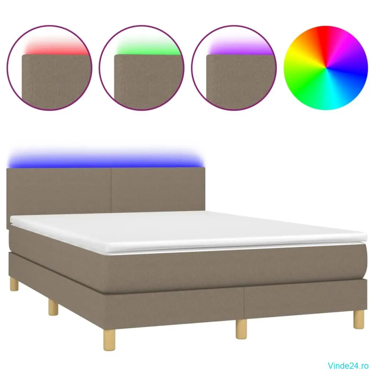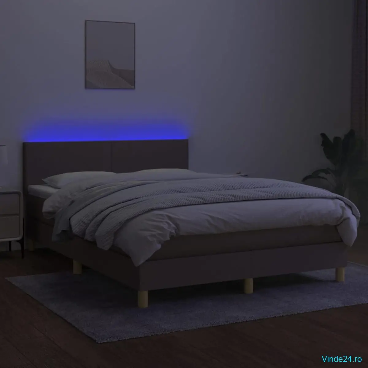 vidaXL Pat cu arcuri, saltea și LED, gri taupe, 140x200 cm, textil