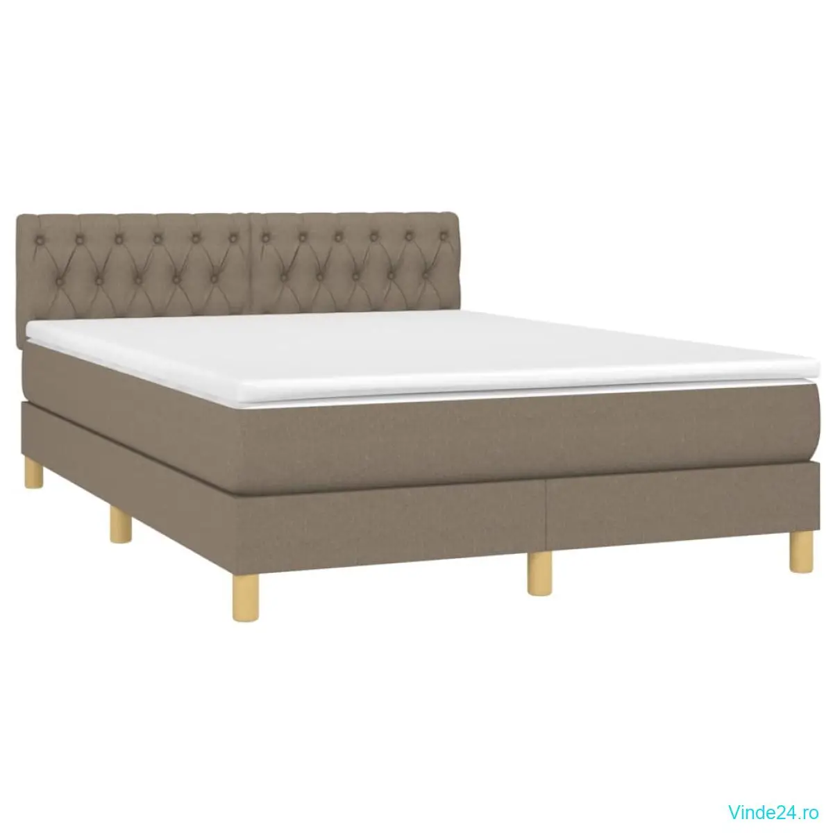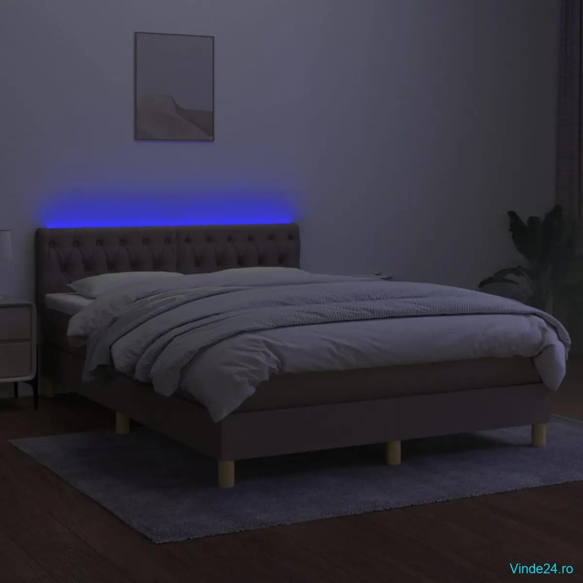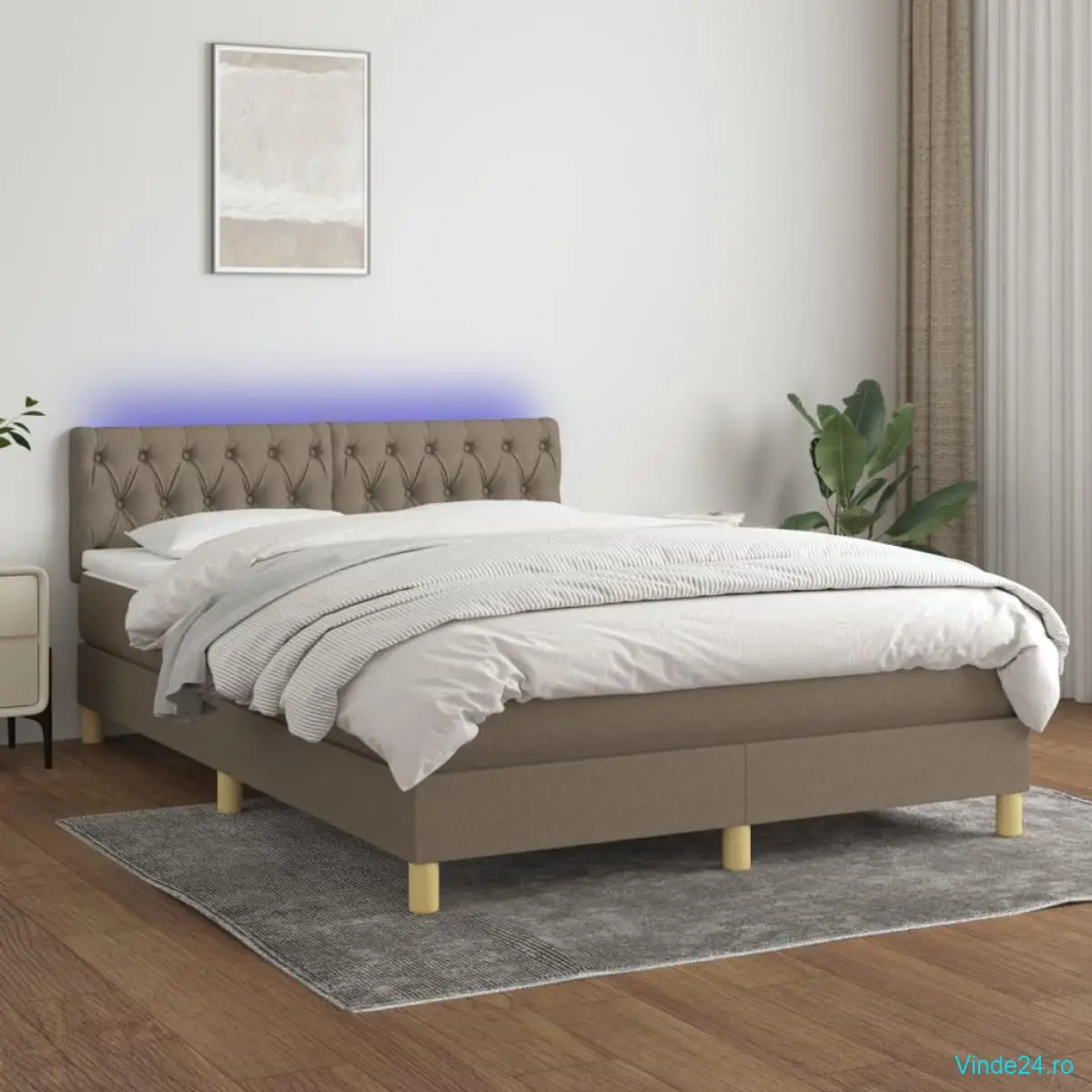 vidaXL Pat cu arcuri, saltea și LED, gri taupe, 140x200 cm, textil