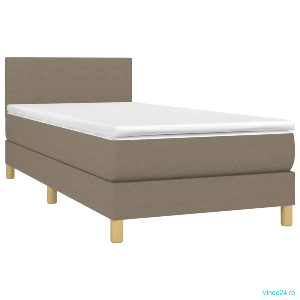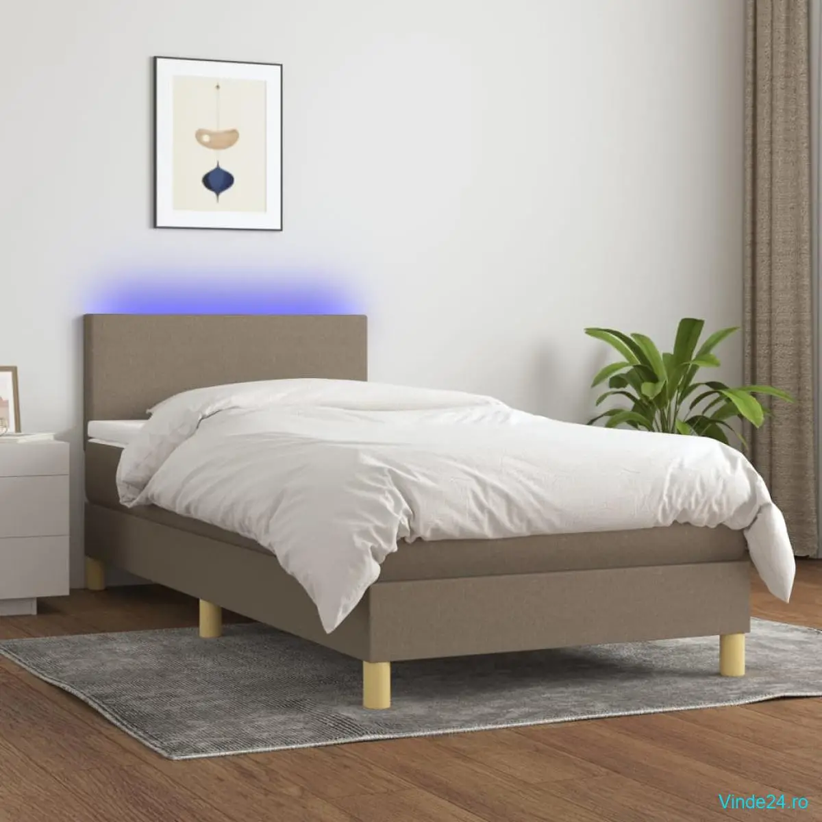 vidaXL Pat cu arcuri, saltea și LED, gri taupe, 90x190 cm, textil