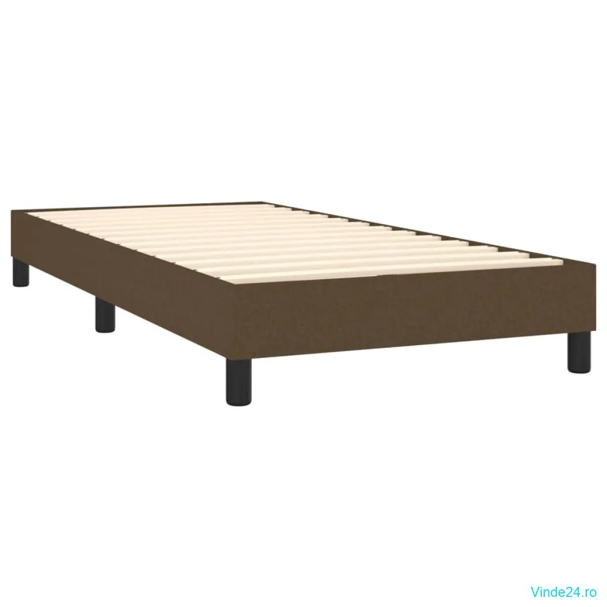 vidaXL Pat cu arcuri, saltea și LED, maro închis, 100x200 cm, textil