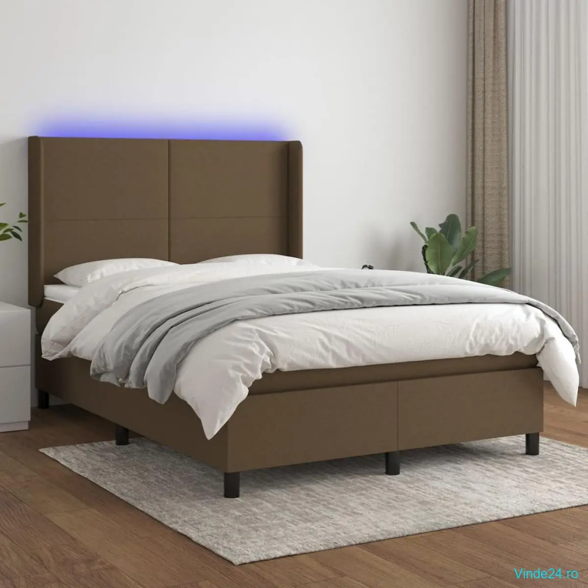 Folosiți acest pat cu arcuri, cu saltea și LED-uri, pentru a vă bucura de un somn odihnitor! Va fi punctul de atracție al dormitorului dvs.