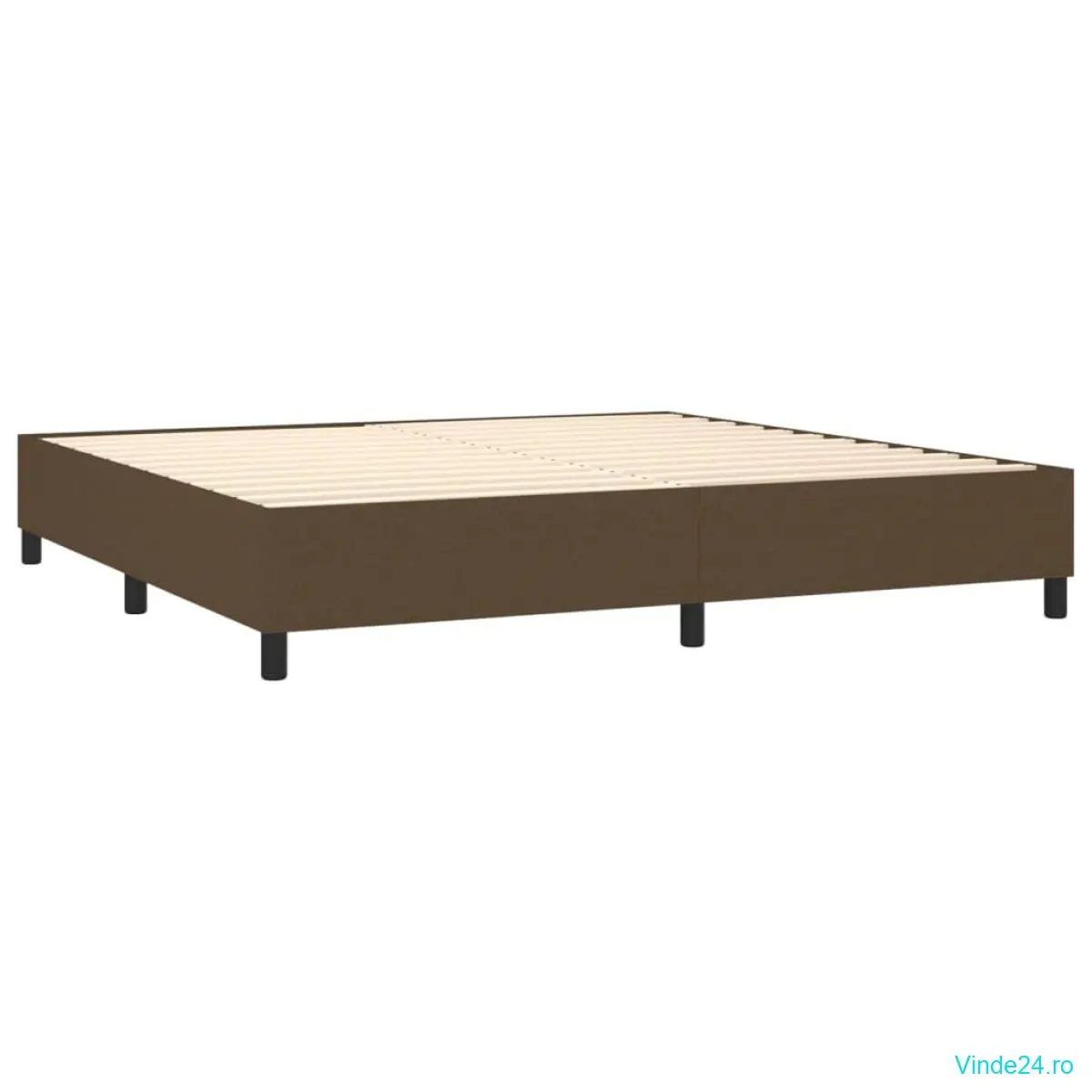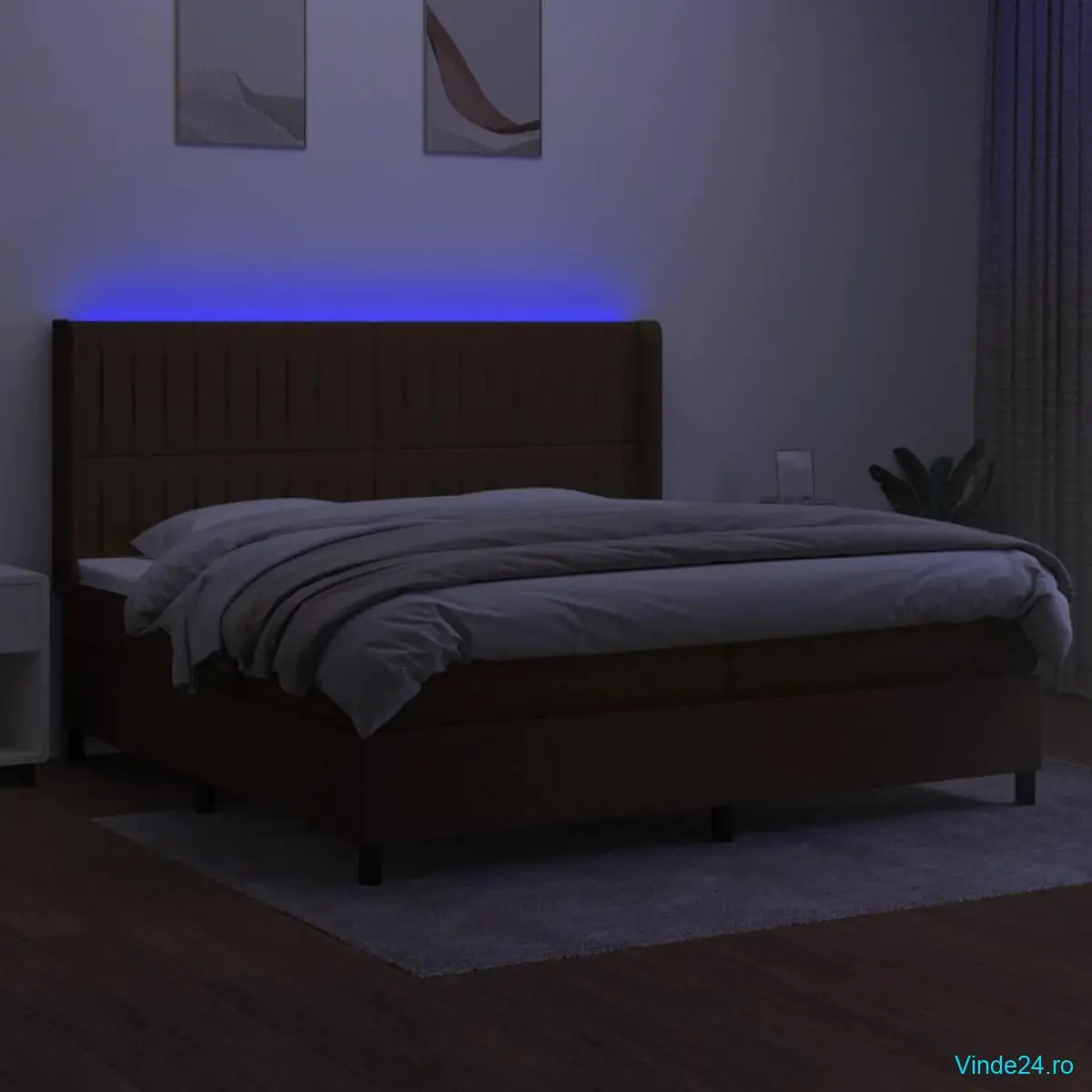 vidaXL Pat cu arcuri, saltea și LED, maro închis, 200x200 cm, textil