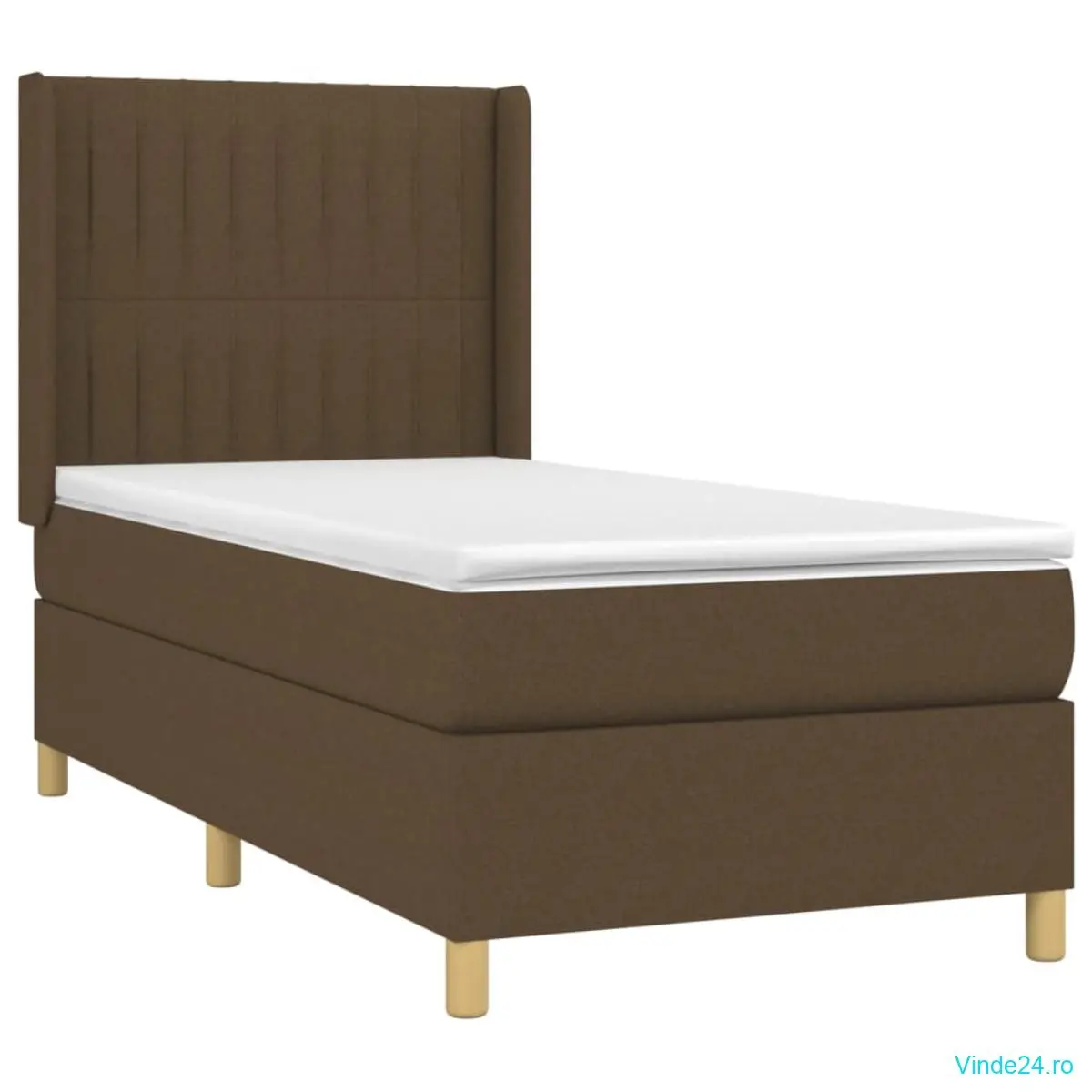 vidaXL Pat cu arcuri, saltea și LED, maro închis, 90x190 cm, textil