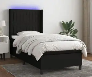 vidaXL Pat cu arcuri, saltea și LED, negru, 100x200 cm, textil