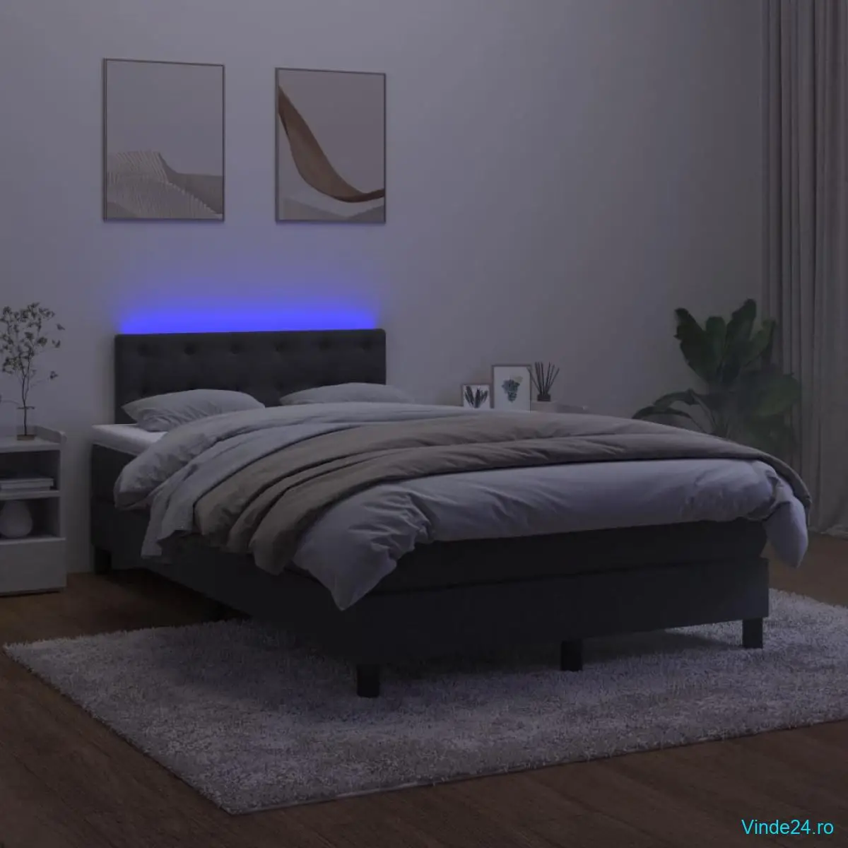 Folosiți acest pat cu arcuri, cu saltea și LED-uri, pentru a vă bucura de un somn odihnitor! Va fi punctul de atracție al dormitorului dvs.