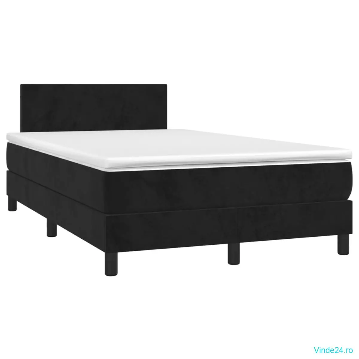 vidaXL Pat cu arcuri, saltea și LED, negru, 120x200 cm, catifea