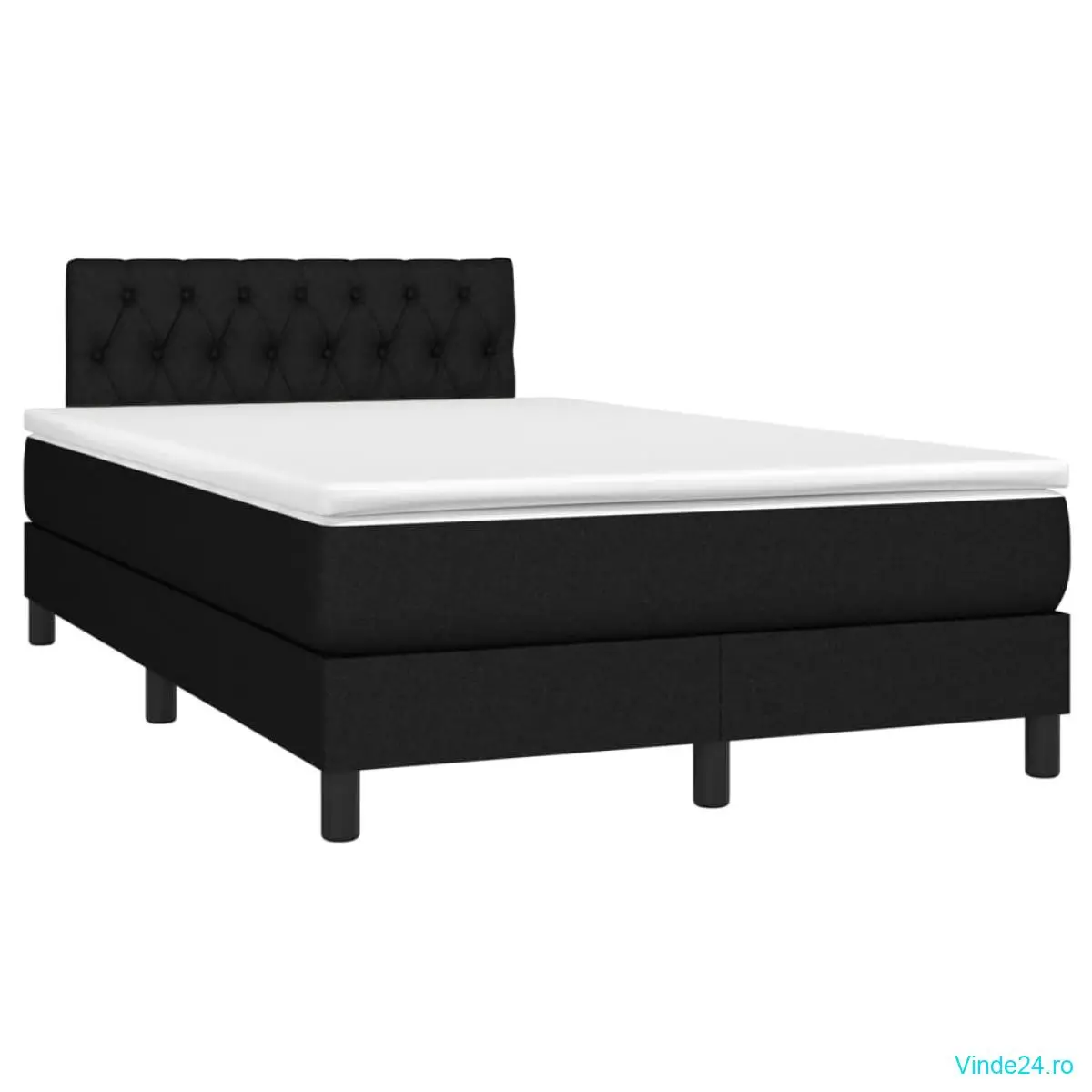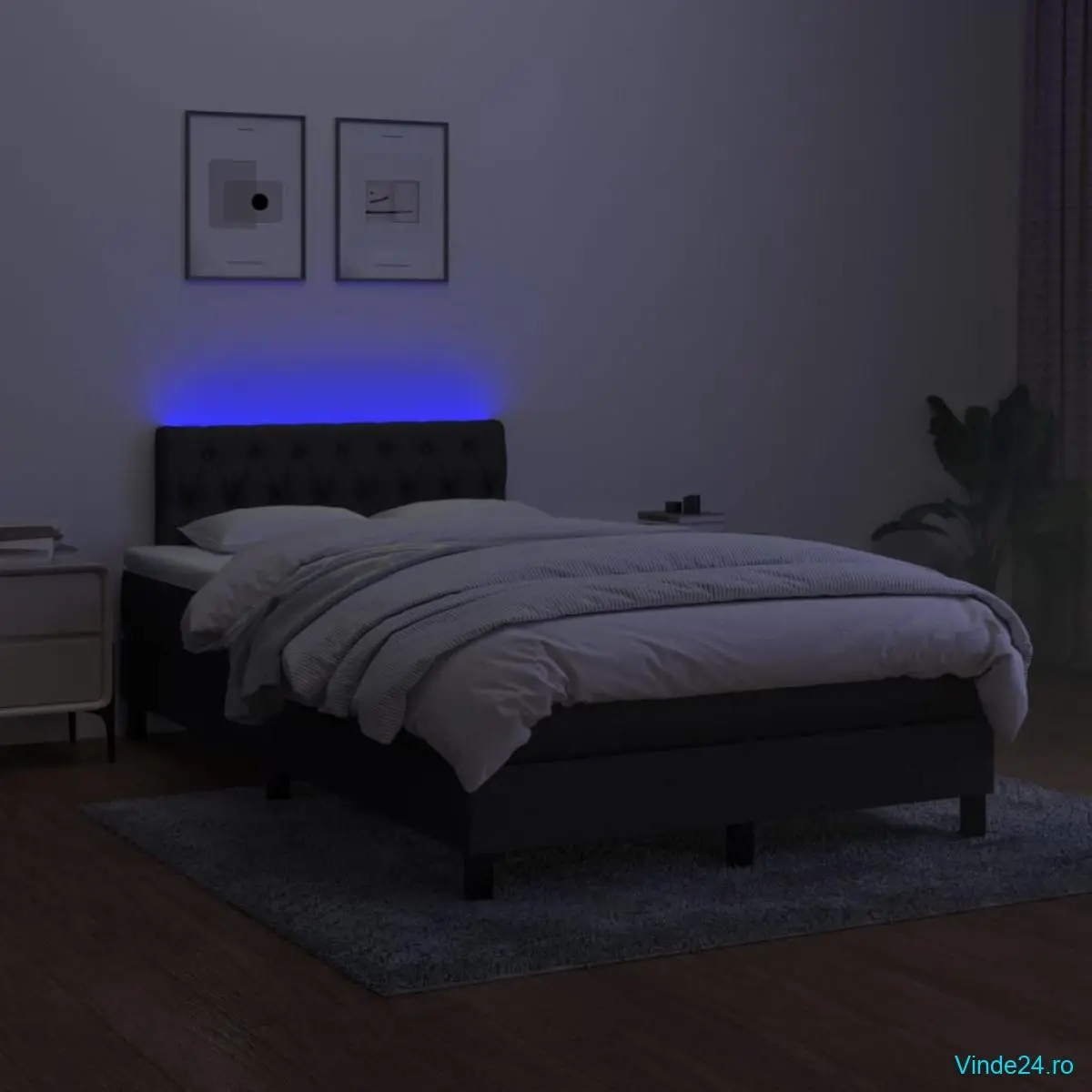 vidaXL Pat cu arcuri, saltea și LED, negru, 120x200 cm, textil