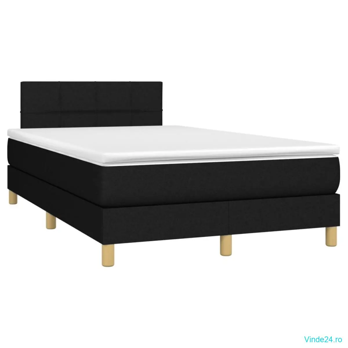 vidaXL Pat cu arcuri, saltea și LED, negru, 120x200 cm, textil