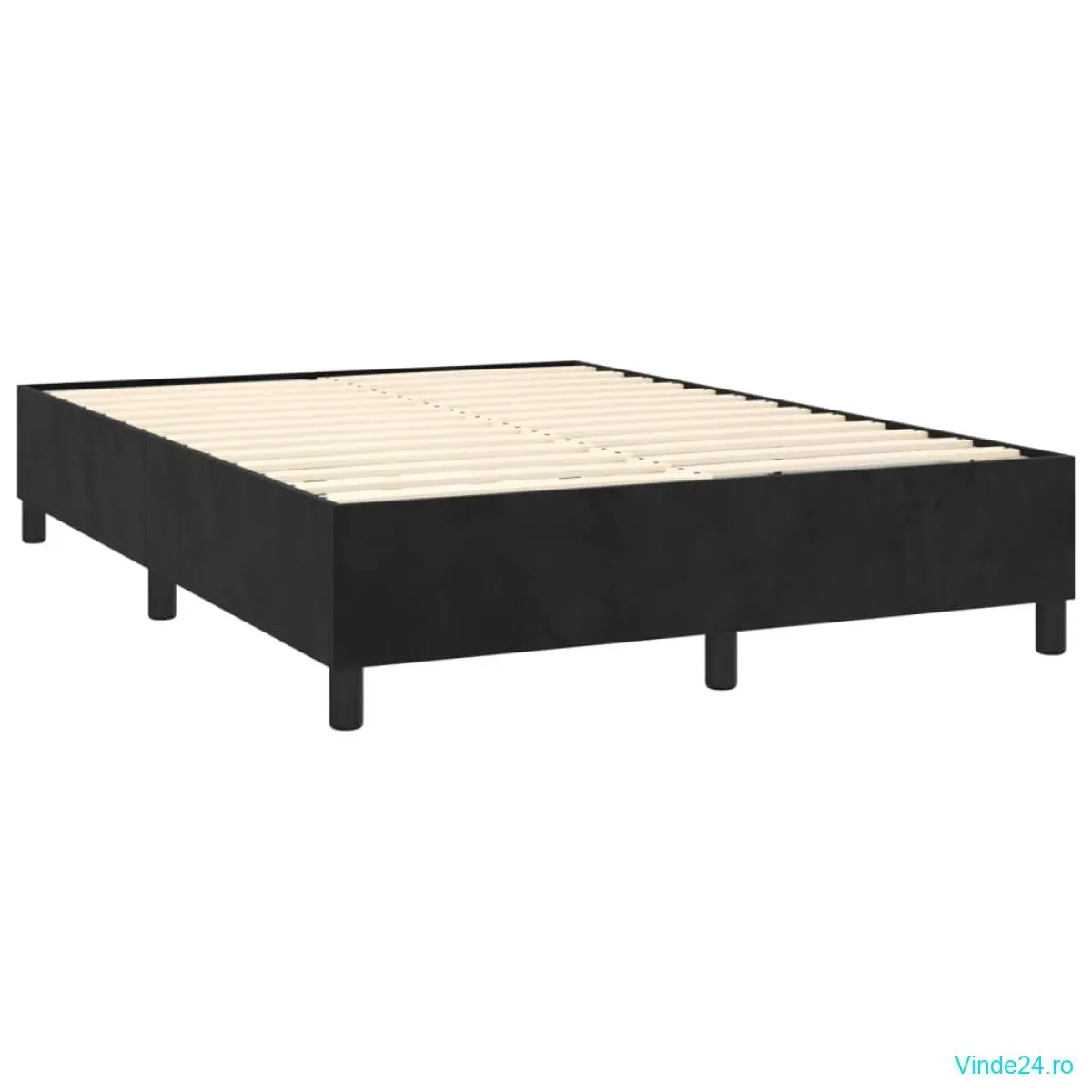 vidaXL Pat cu arcuri, saltea și LED, negru, 140x190 cm, catifea
