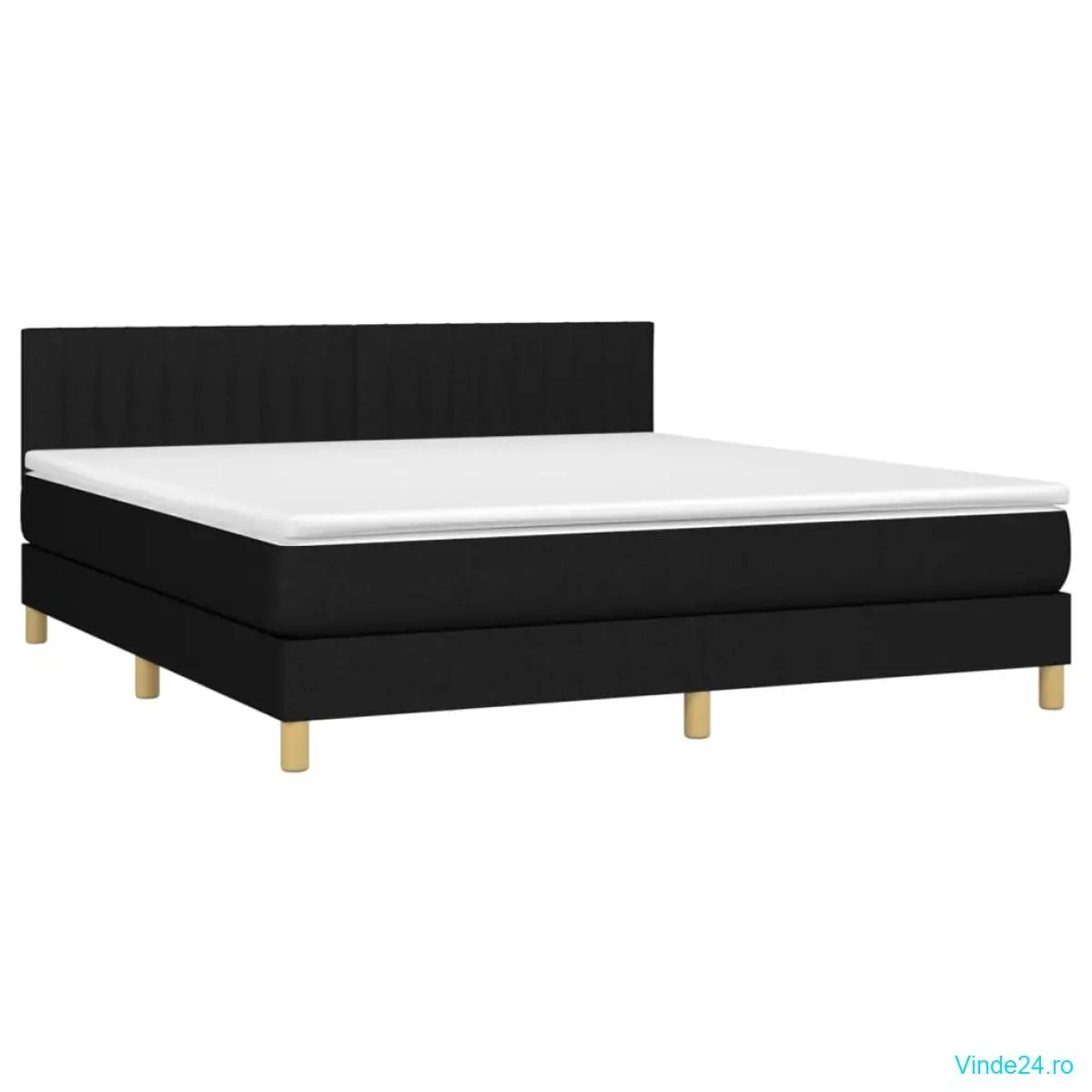 vidaXL Pat cu arcuri, saltea și LED, negru, 160x200 cm, textil