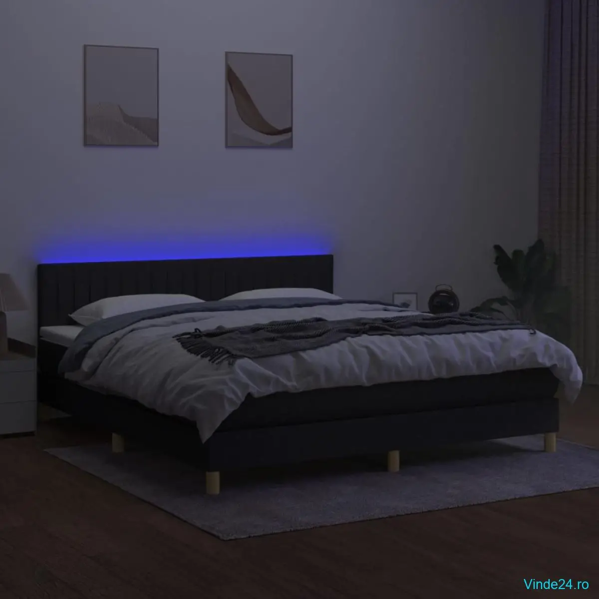 vidaXL Pat cu arcuri, saltea și LED, negru, 160x200 cm, textil
