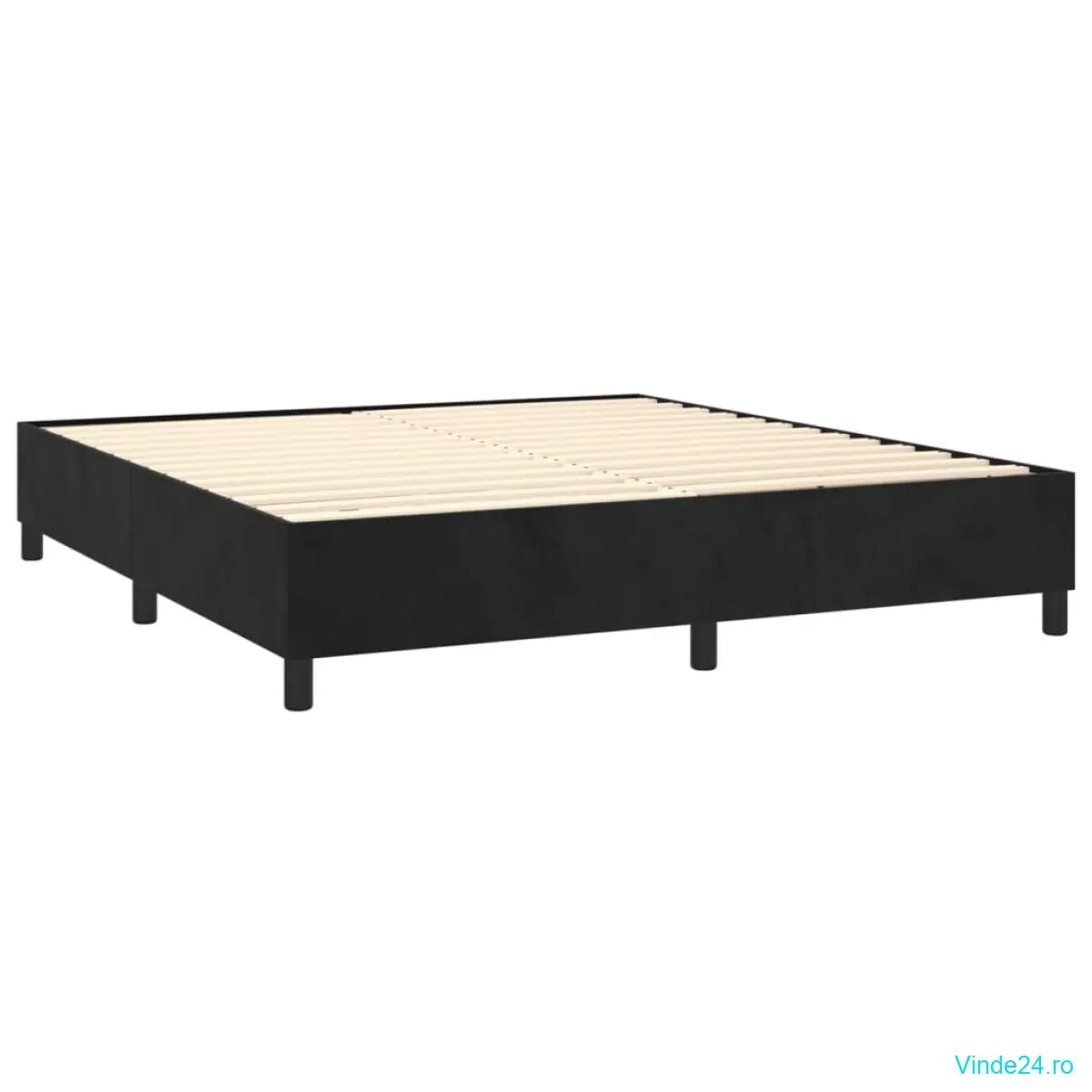 vidaXL Pat cu arcuri, saltea și LED, negru, 180x200 cm, catifea