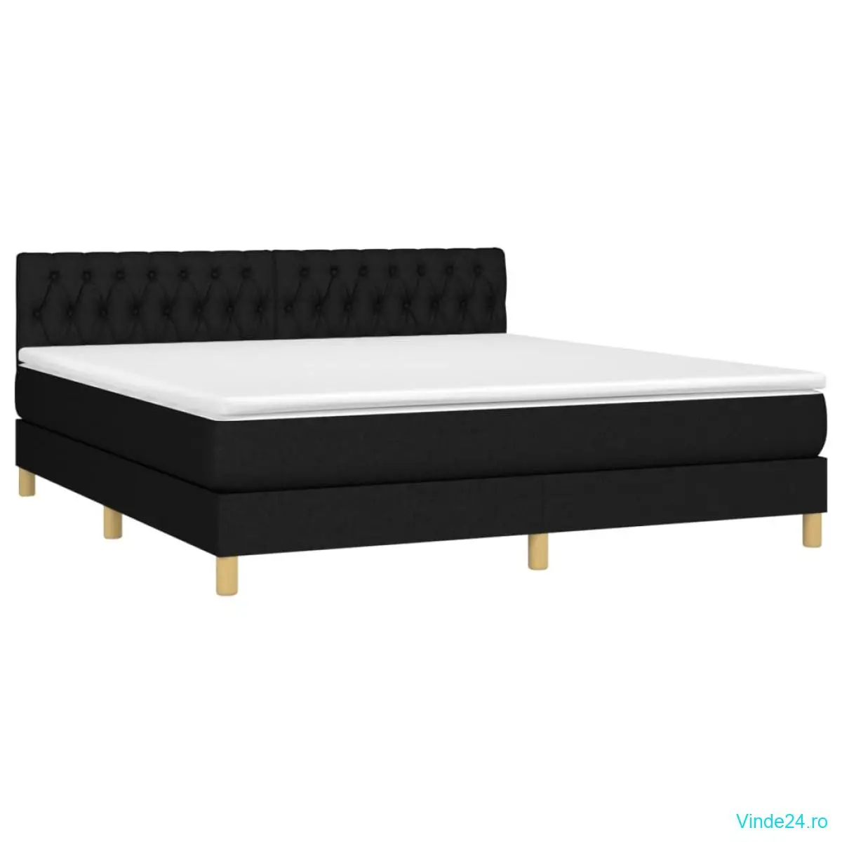 vidaXL Pat cu arcuri, saltea și LED, negru, 180x200 cm, textil