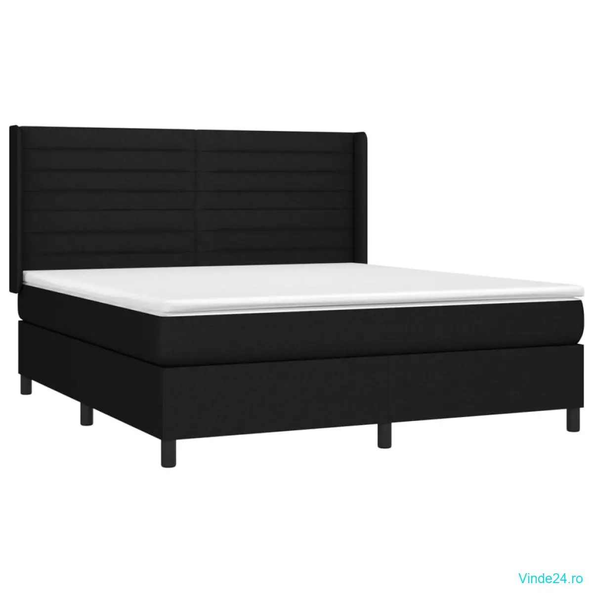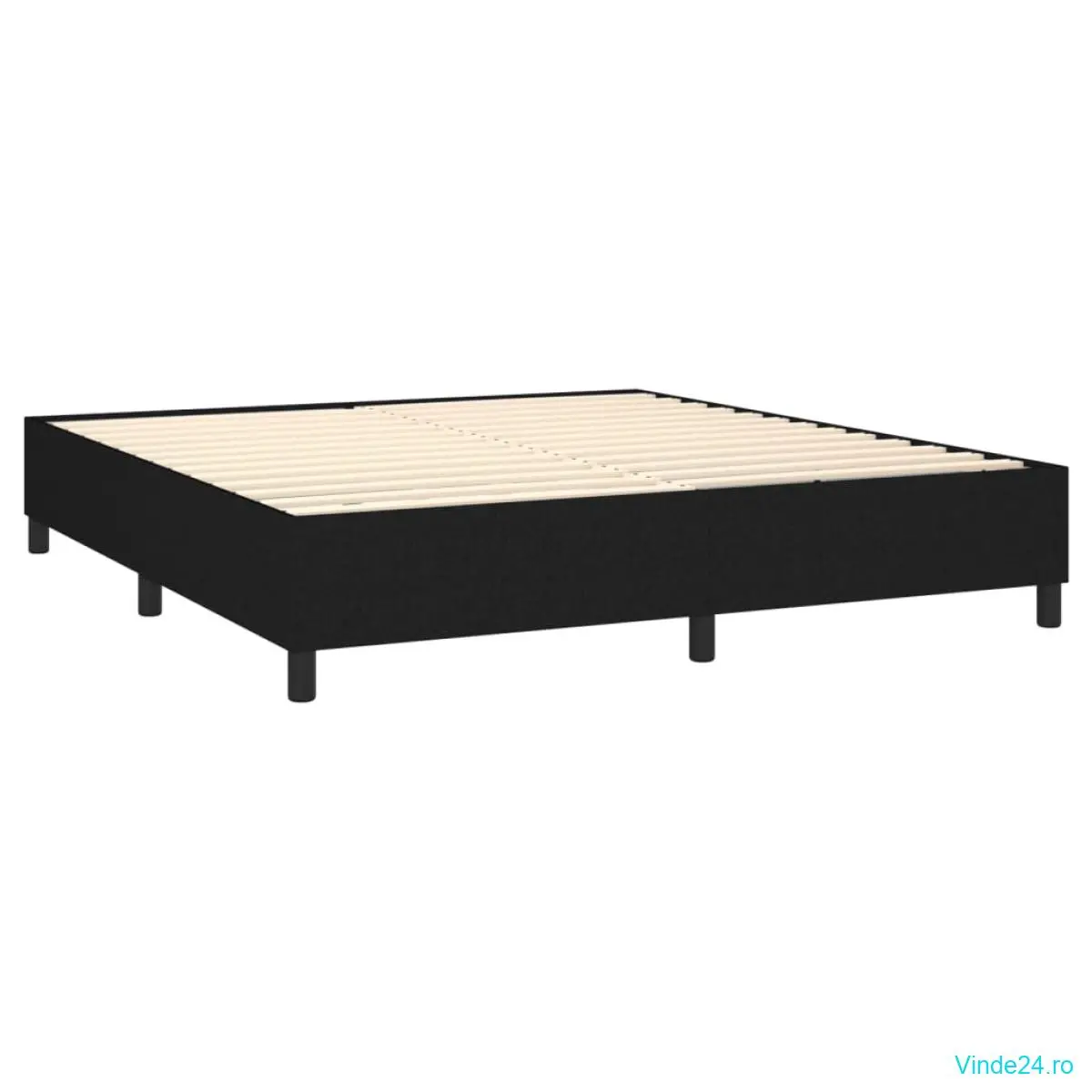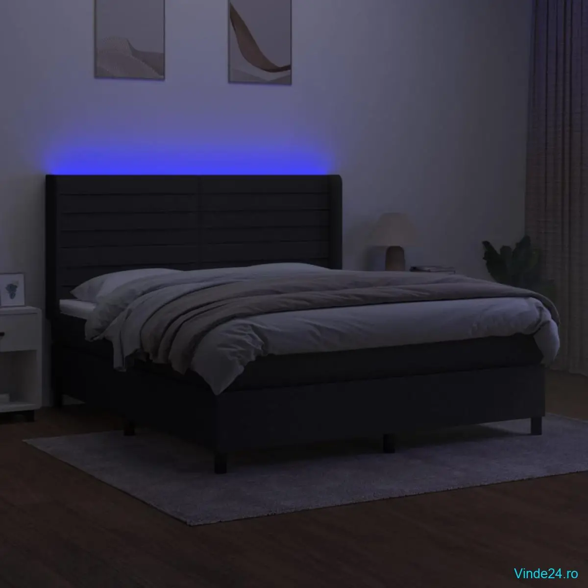 vidaXL Pat cu arcuri, saltea și LED, negru, 180x200 cm, textil