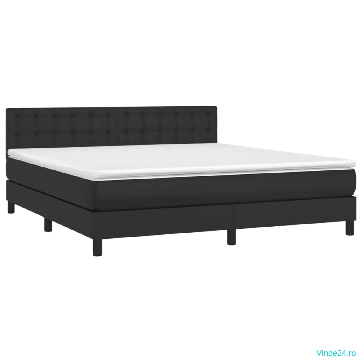 vidaXL Pat cu arcuri, saltea și LED, negru, 180x200cm, piele ecologică