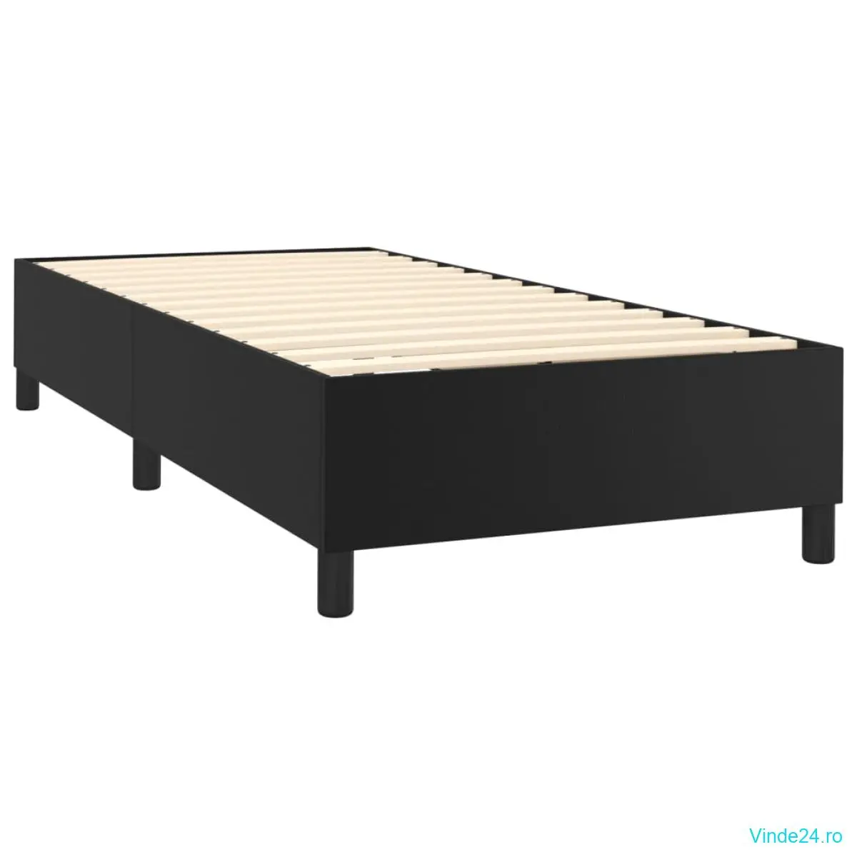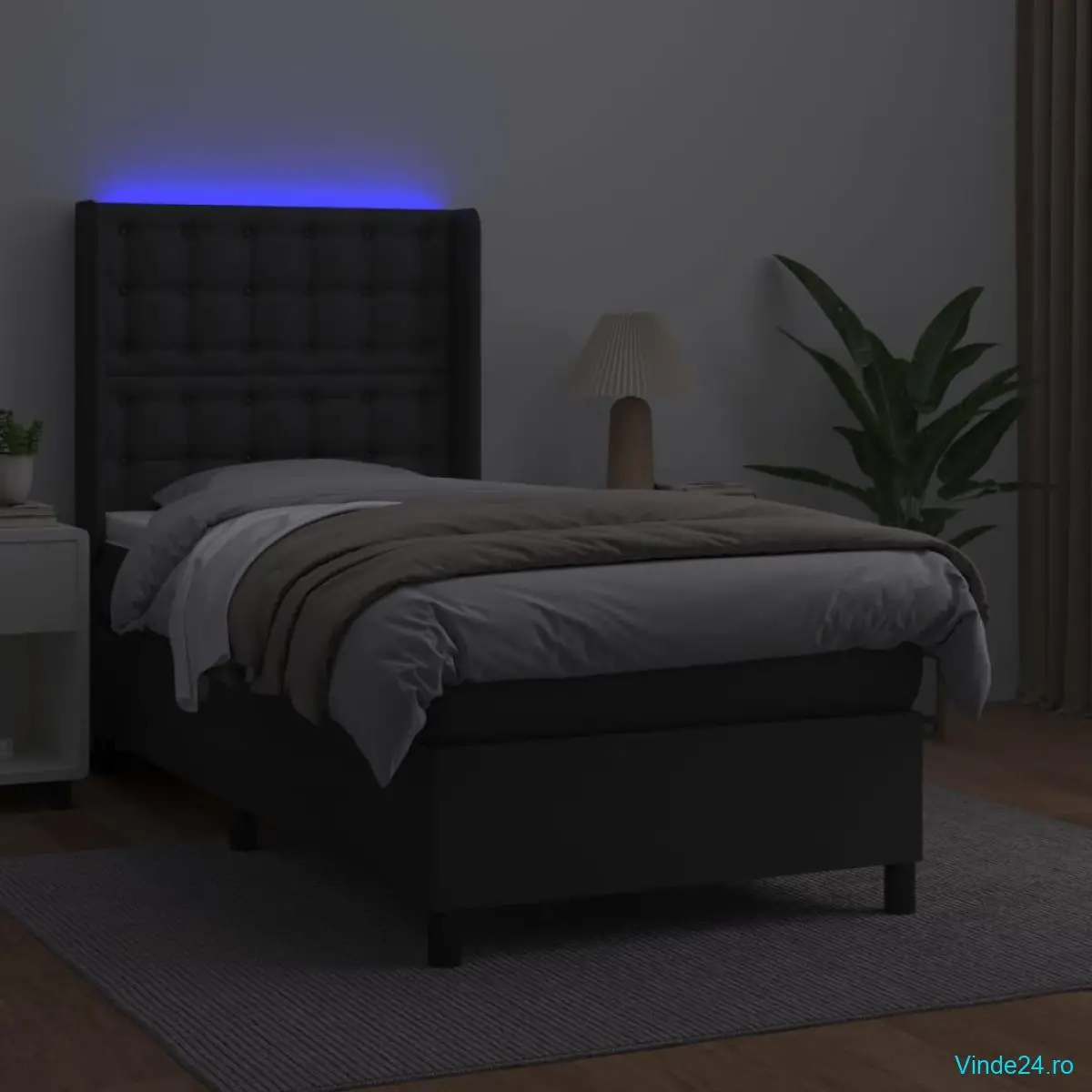 vidaXL Pat cu arcuri, saltea și LED, negru, 90x190 cm, piele ecologică