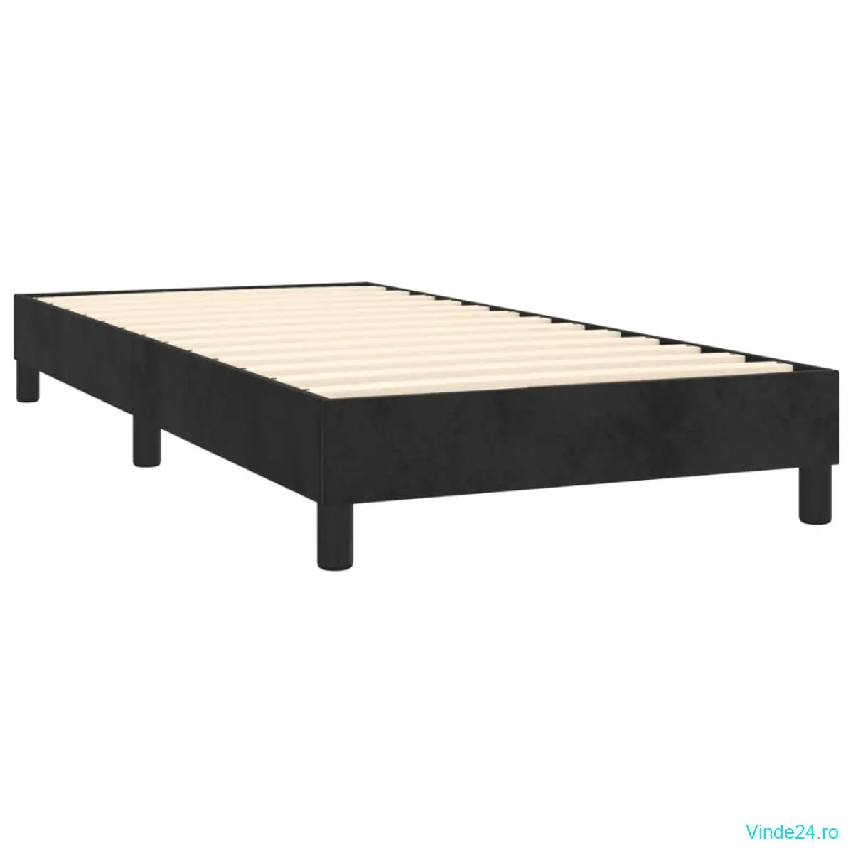 vidaXL Pat cu arcuri, saltea și LED, negru, 90x200 cm, catifea