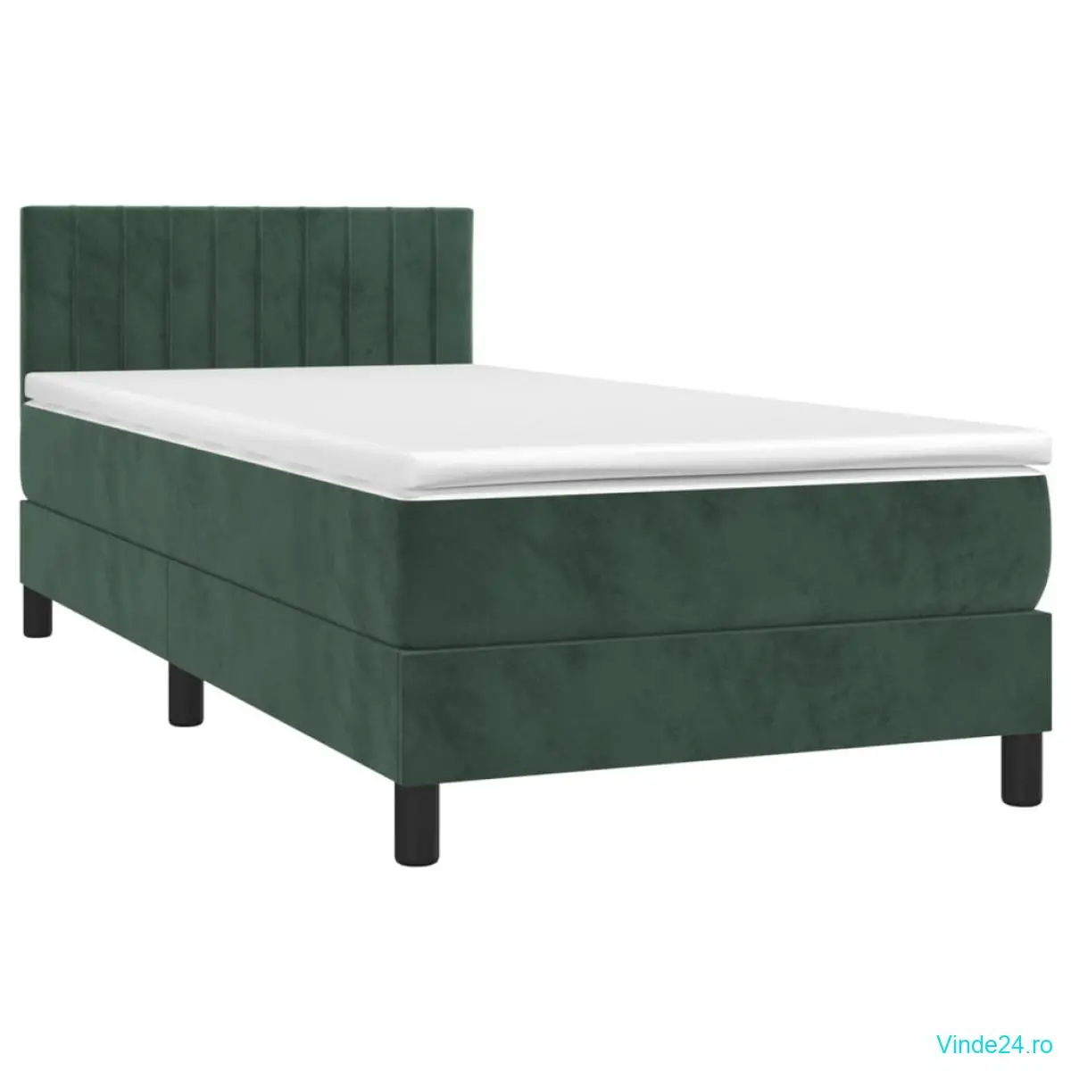 vidaXL Pat cu arcuri, saltea și LED, verde, 90x200 cm, catifea