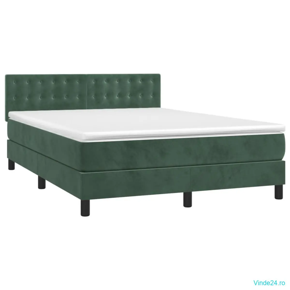 vidaXL Pat cu arcuri, saltea și LED, verde închis, 140x190 cm, catifea