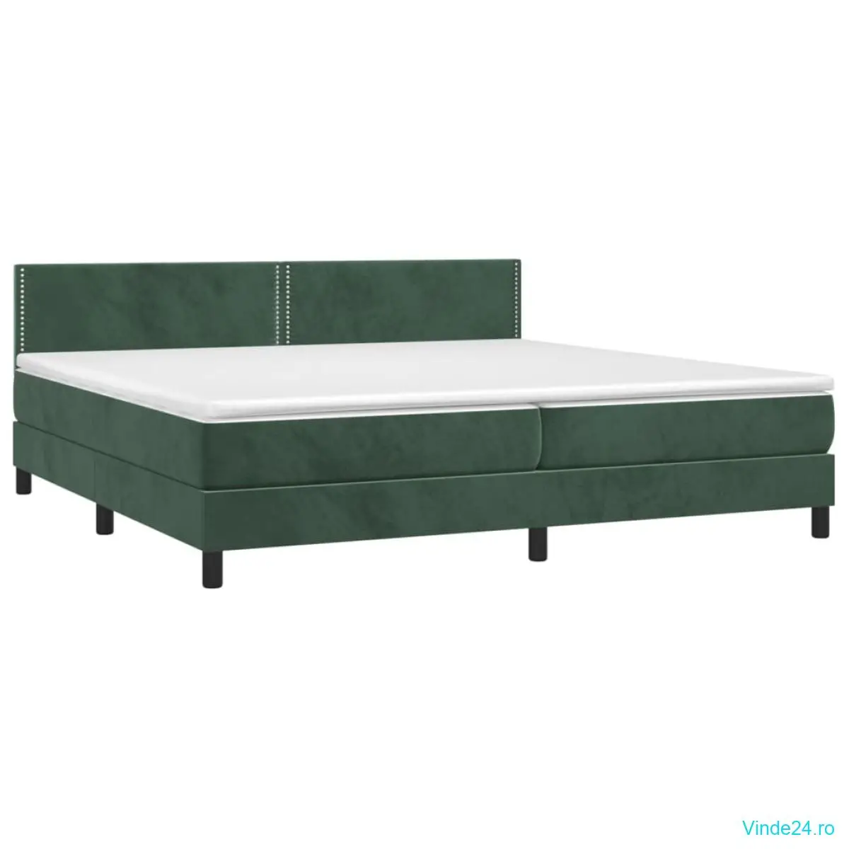 vidaXL Pat cu arcuri, saltea și LED, verde închis, 200x200 cm, catifea