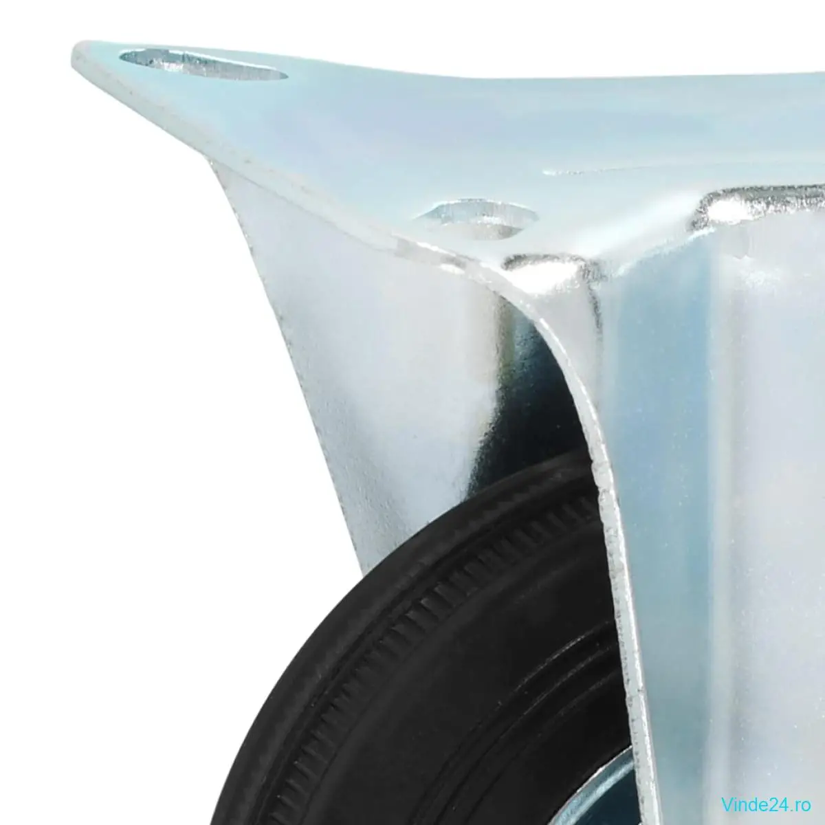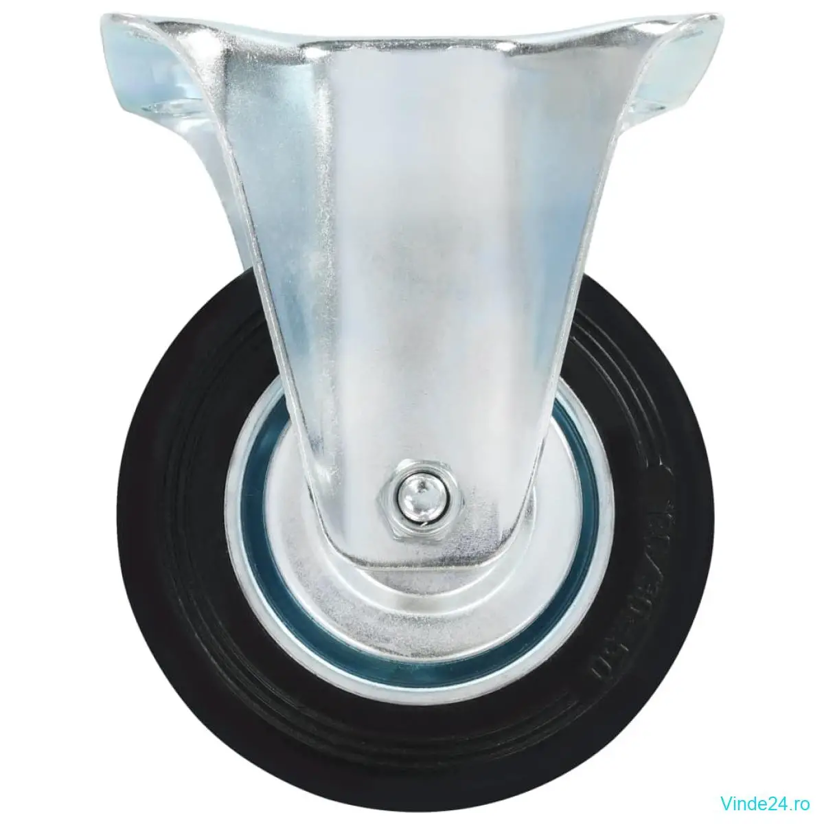 Aceste roți sunt fabricate din cauciuc, care se remarcă printr-o rezistență bună la șocuri și vibrații, permițând acestor role să funcționeze lin și silențios. În plus, suprafețele lor moi protejează eficient podeaua de zgârieturi. Pe lângă aceasta, cadrul din fier zincat este foarte rezistent la rugină și adaugă, astfel, robustețe și durabilitate roții. Fiecare roată are o capacitate maximă de încărcare de până la 70 kg.