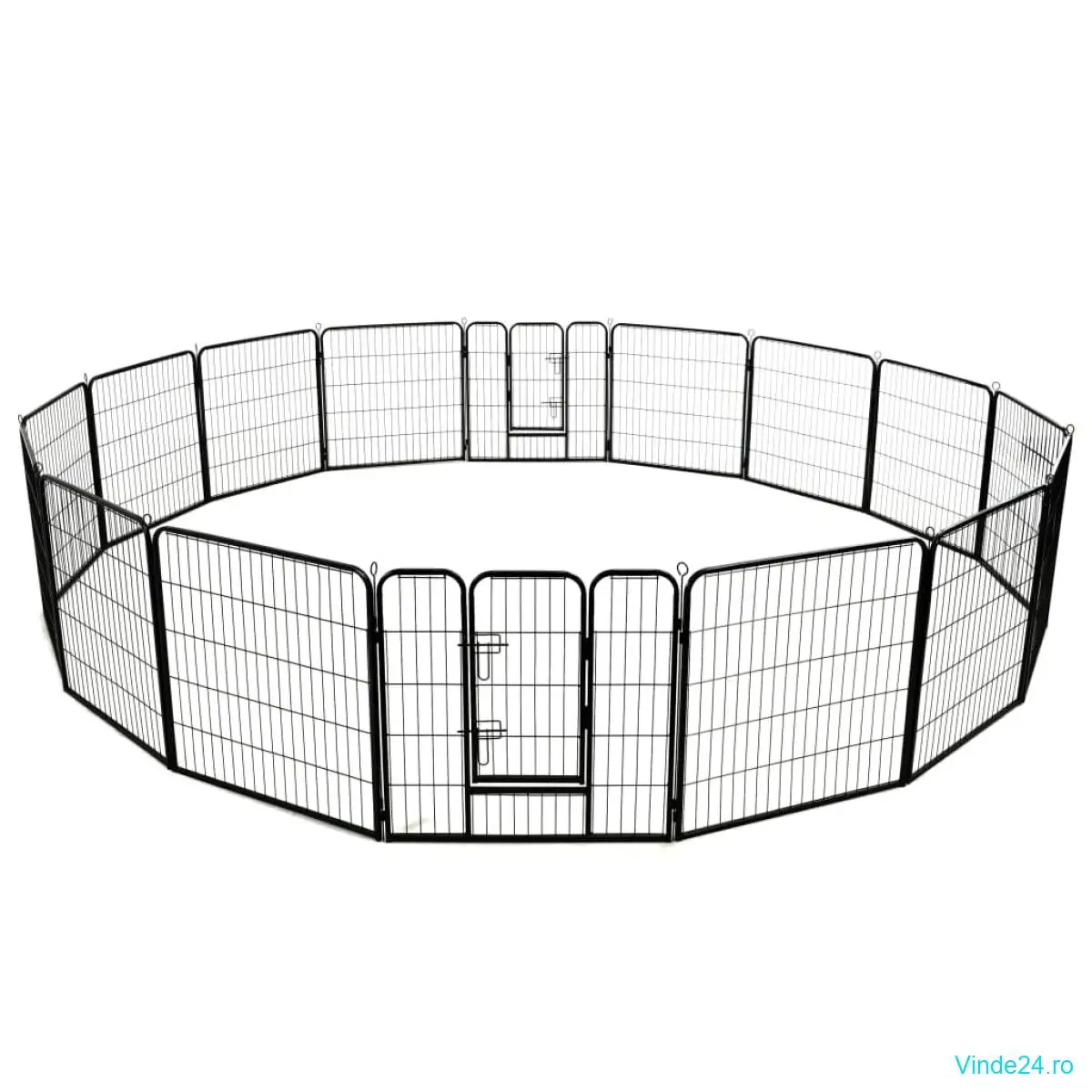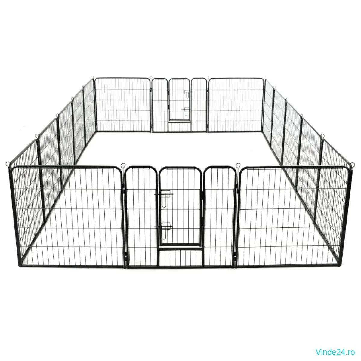 vidaXL Țarc pentru câini, 16 panouri, oțel, 80 x 80 cm, negru