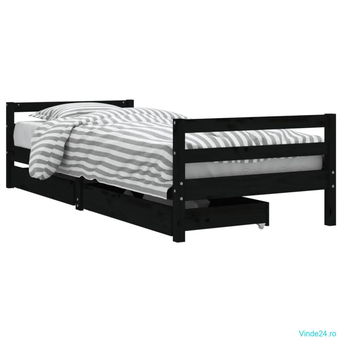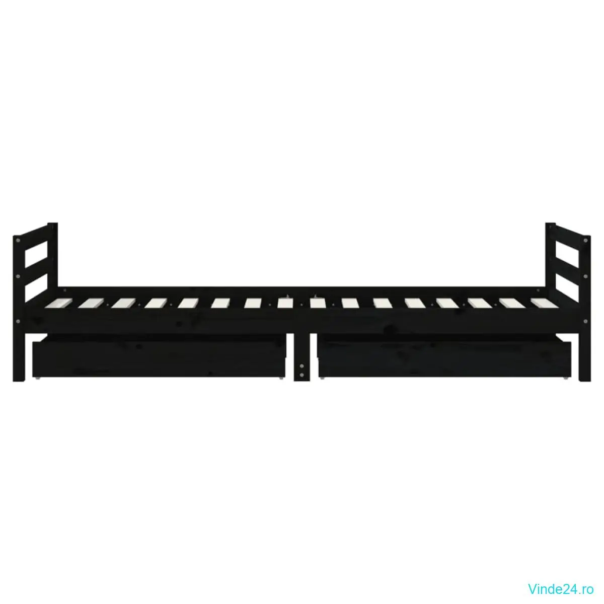 vidaXL Cadru de pat copii cu sertare, negru, 90x200 cm, lemn masiv pin