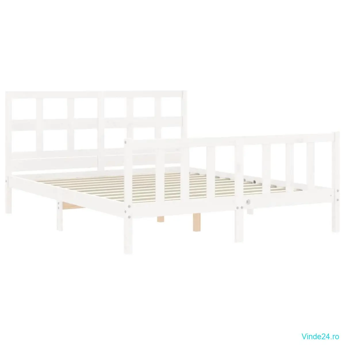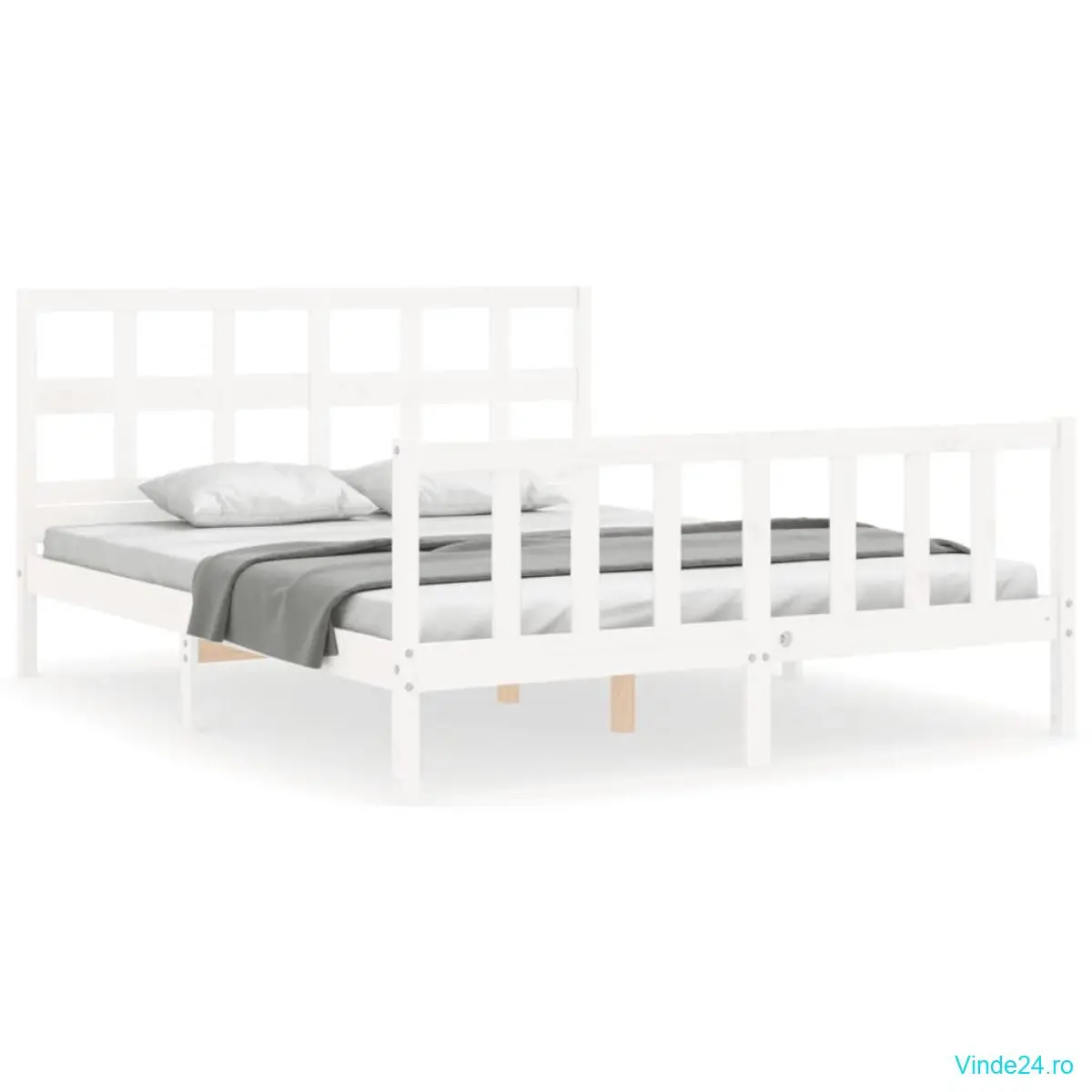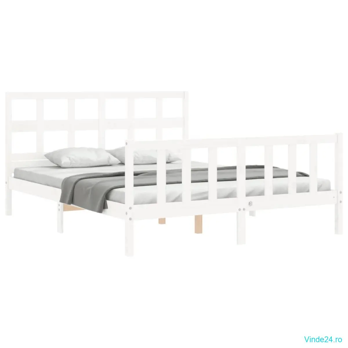 vidaXL Cadru de pat cu tăblie, alb, king size, lemn masiv