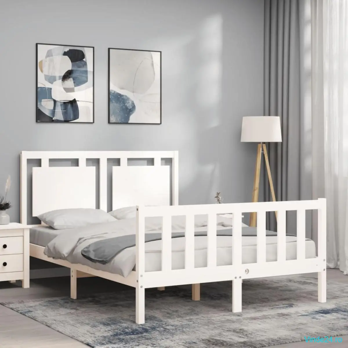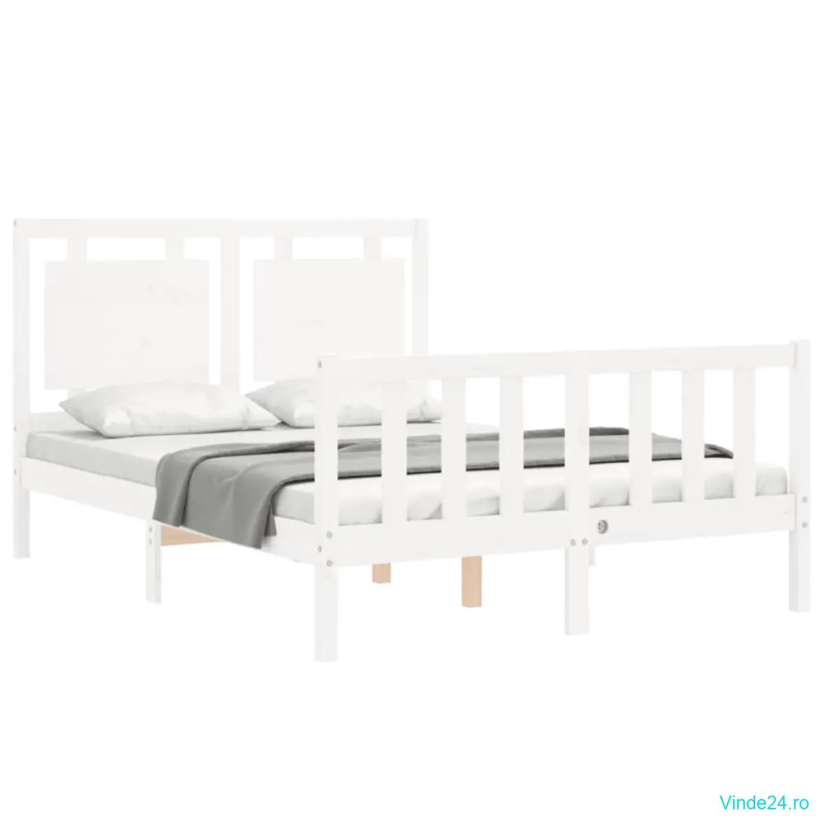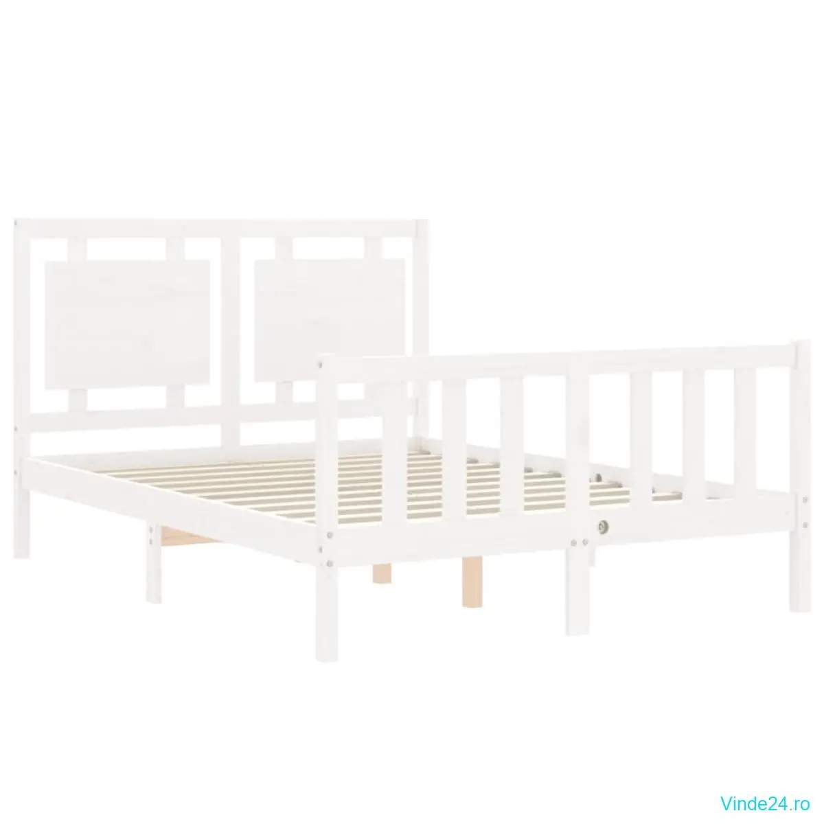 vidaXL Cadru de pat cu tăblie, dublu, alb, lemn masiv