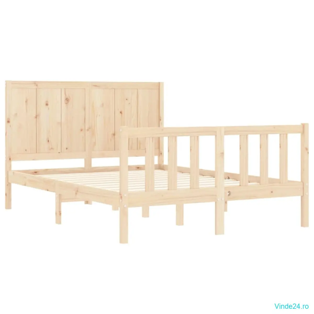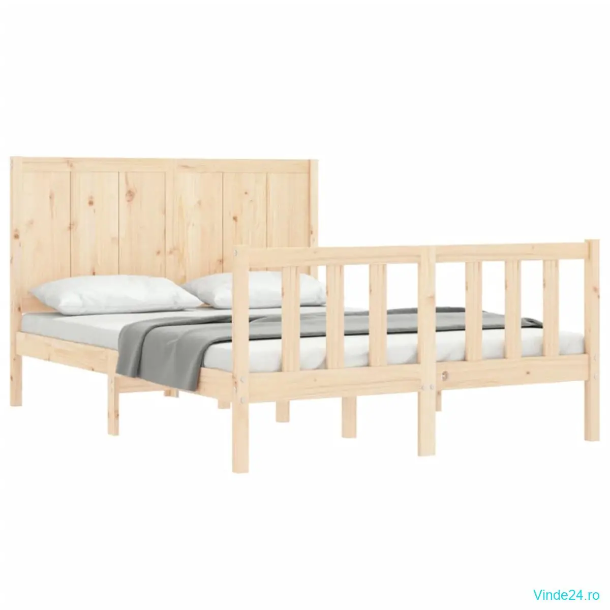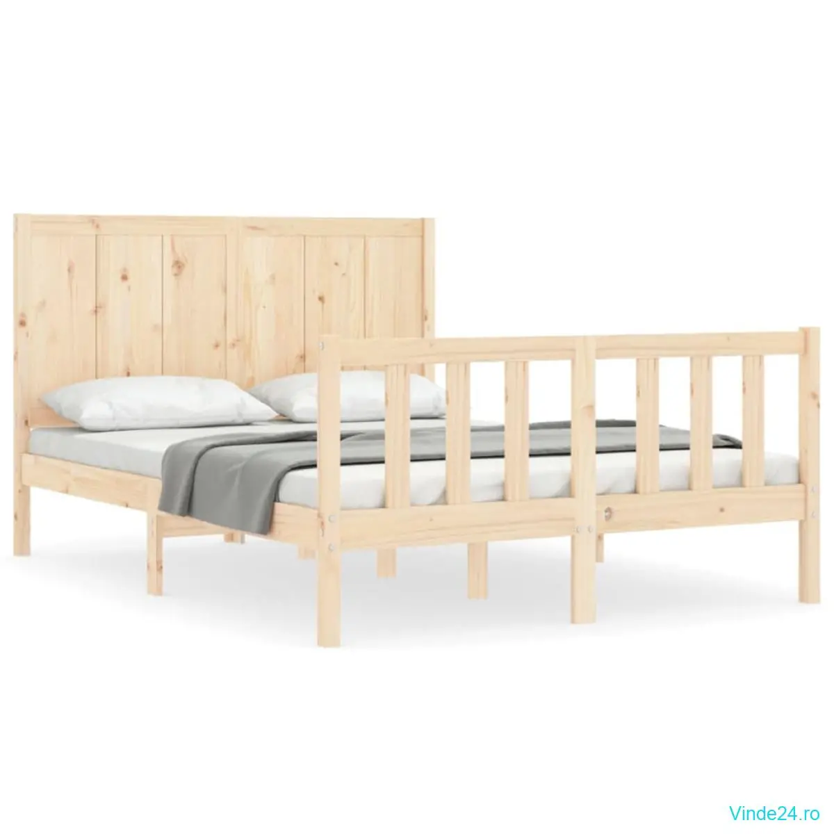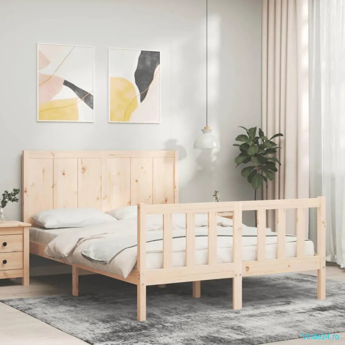 vidaXL Cadru de pat cu tăblie, dublu, lemn masiv