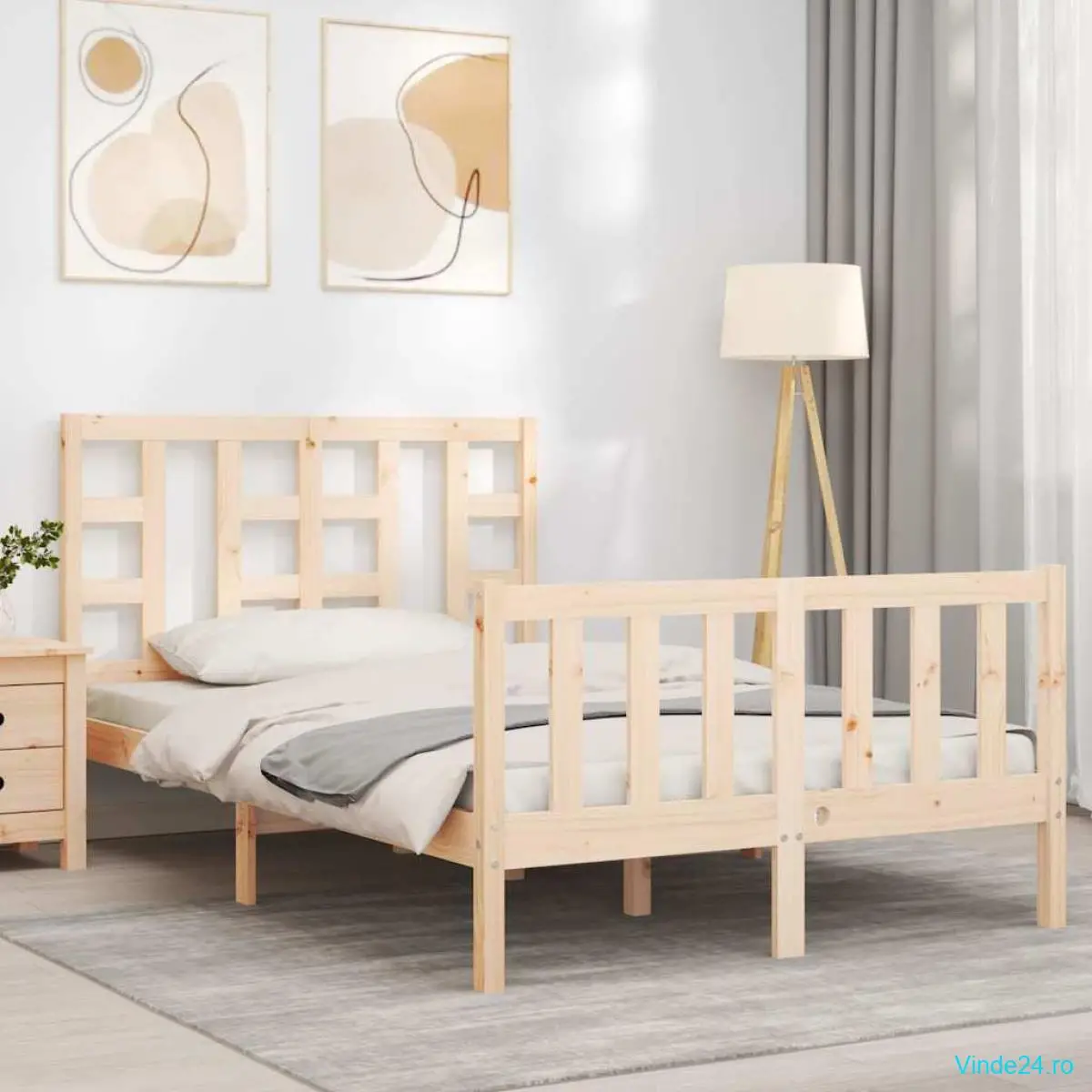 Bucurați-vă de un somn bun cu acest cadru de pat din lemn! Este o completare practică și decorativă pentru interiorul locuinței dvs.