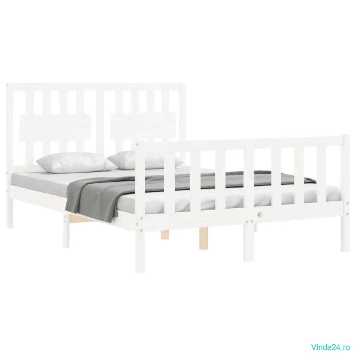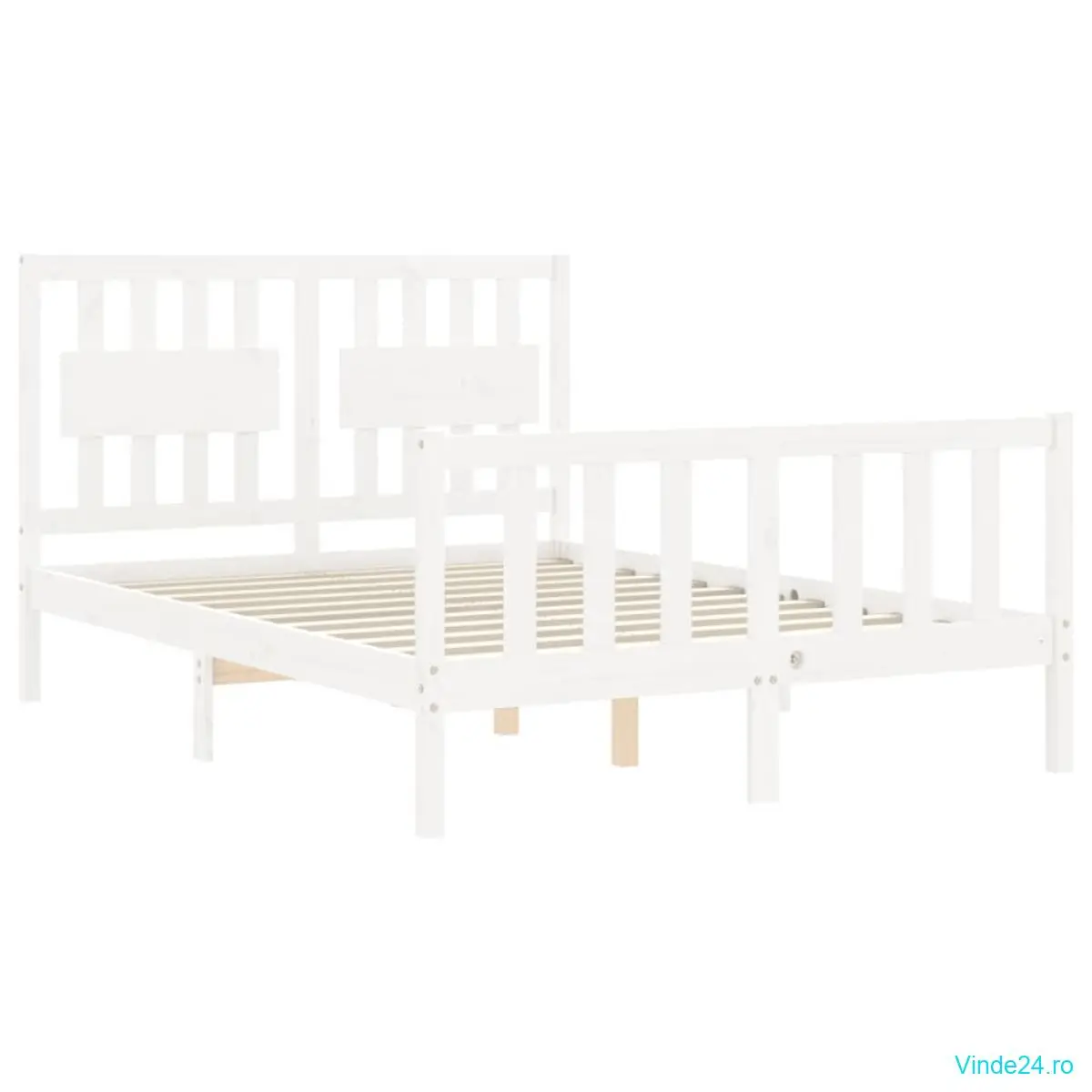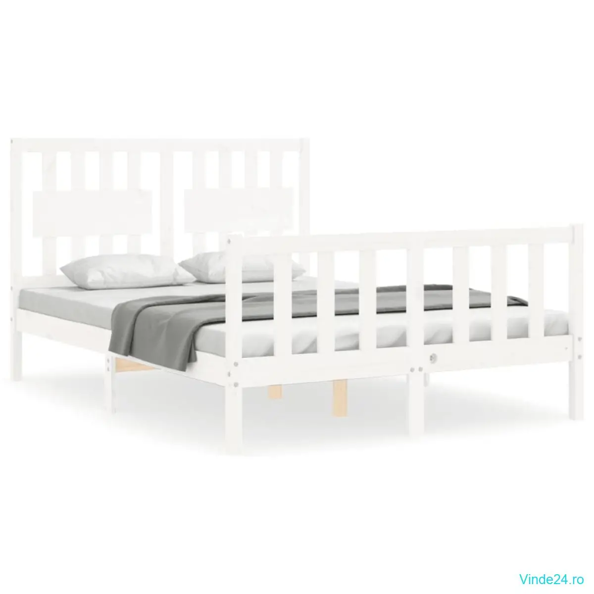 vidaXL Cadru de pat cu tăblie dublu mic, lemn masiv