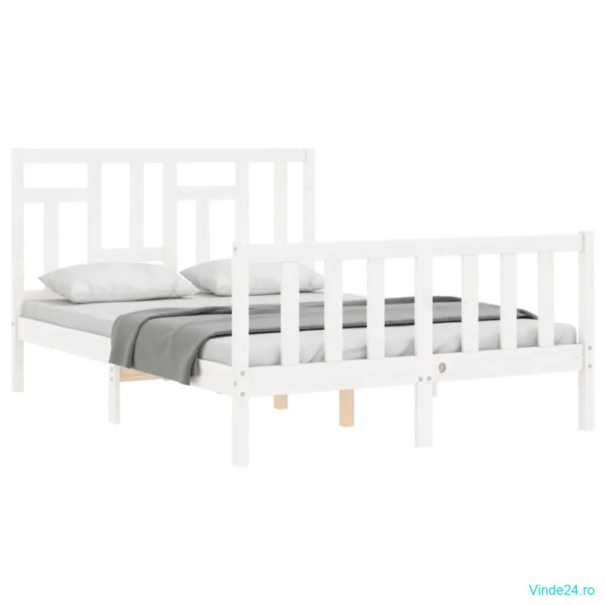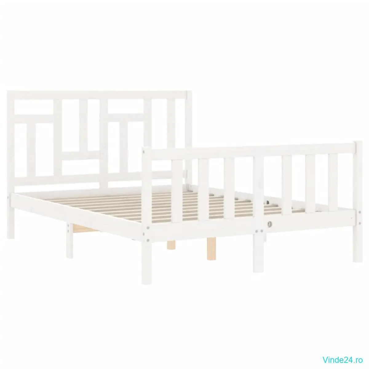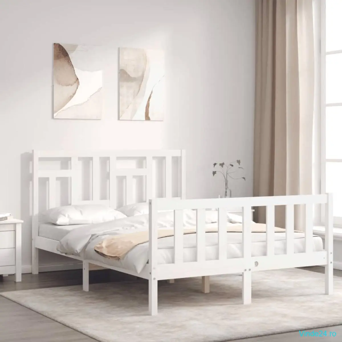vidaXL Cadru de pat cu tăblie dublu mic, lemn masiv
