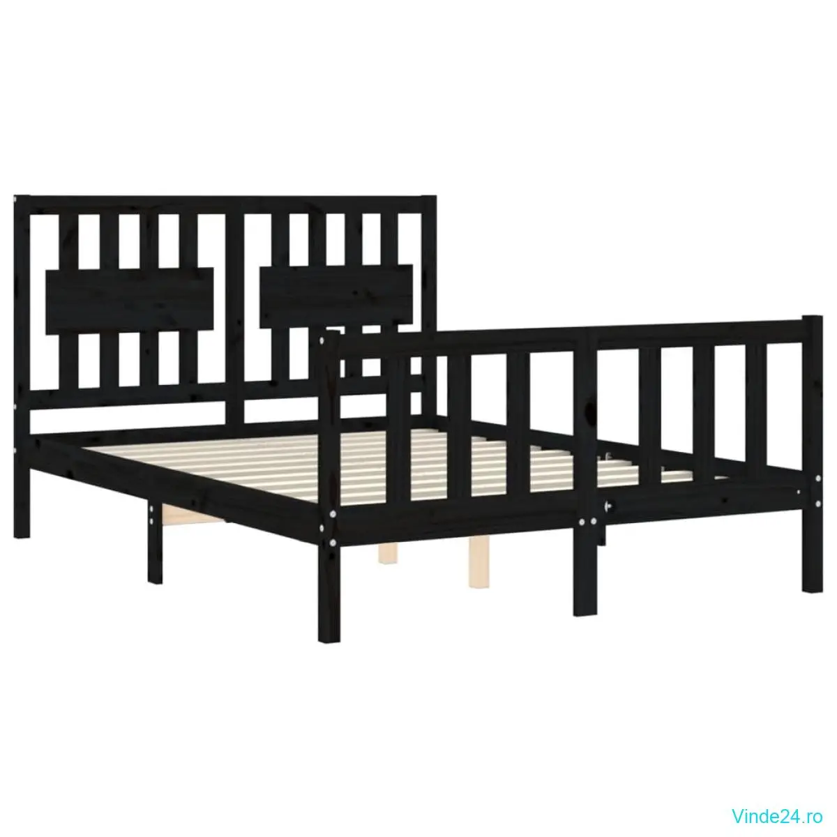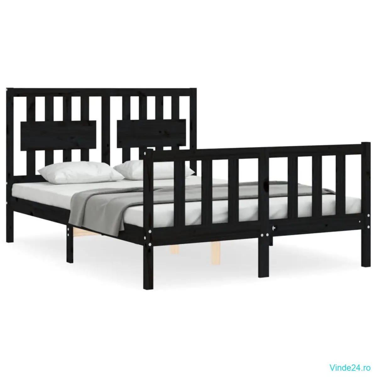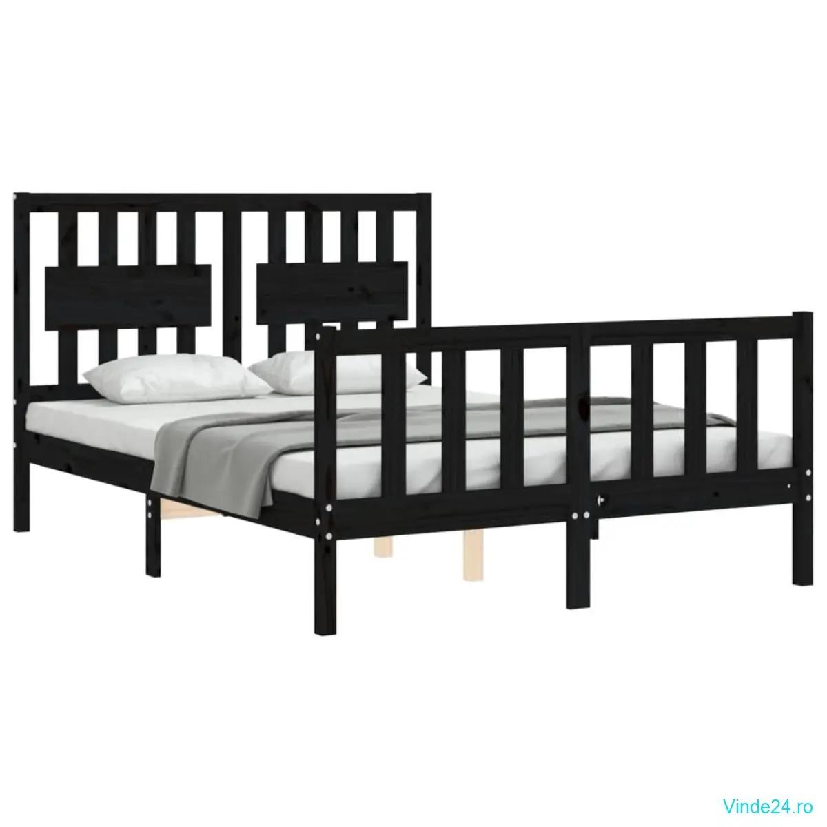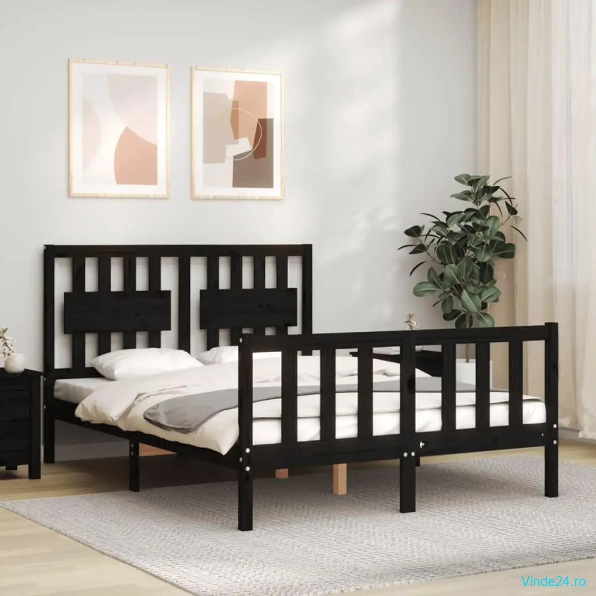 vidaXL Cadru de pat cu tăblie dublu, negru, lemn masiv