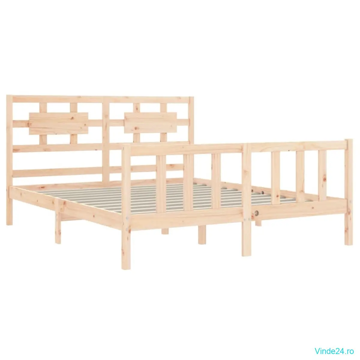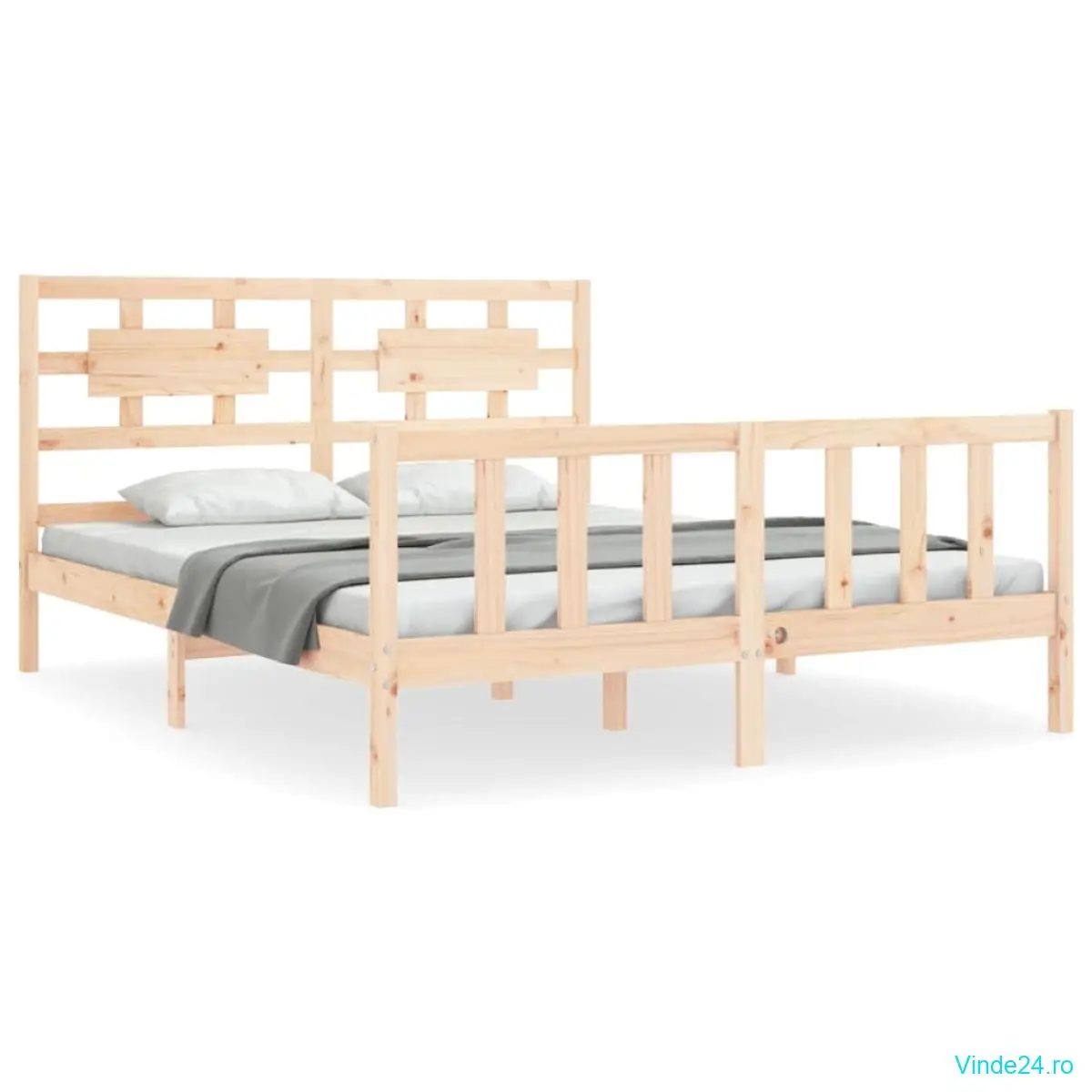 vidaXL Cadru de pat cu tăblie, king size, lemn masiv