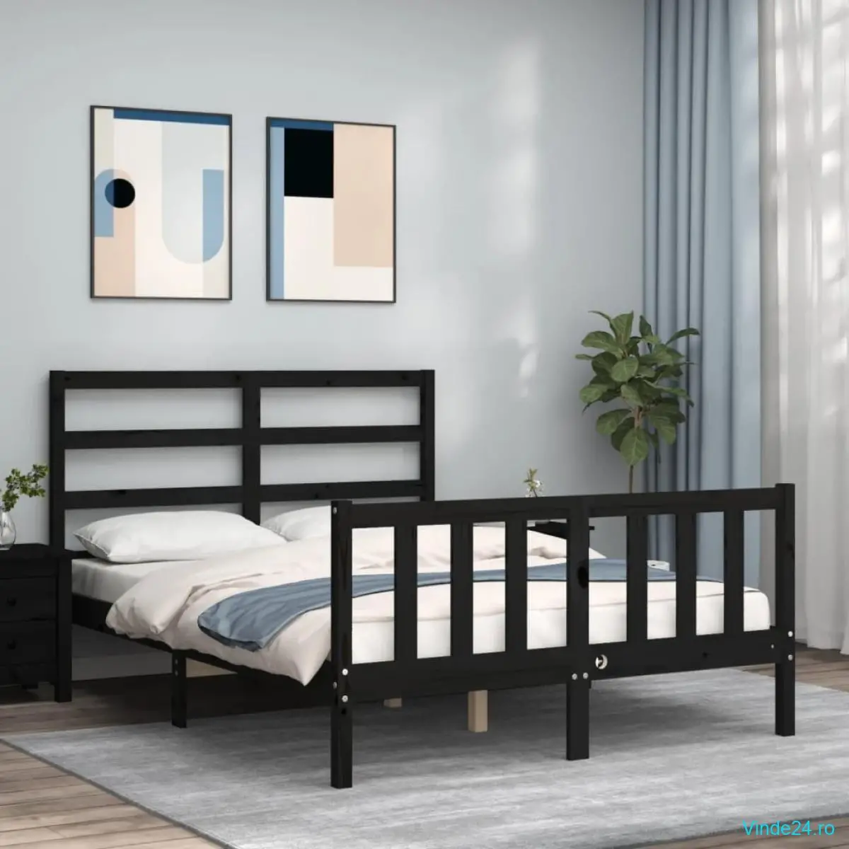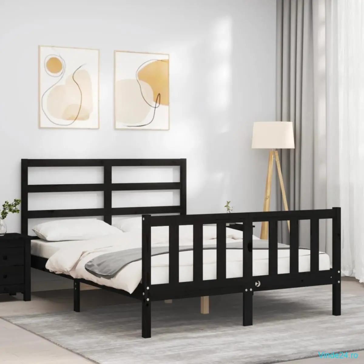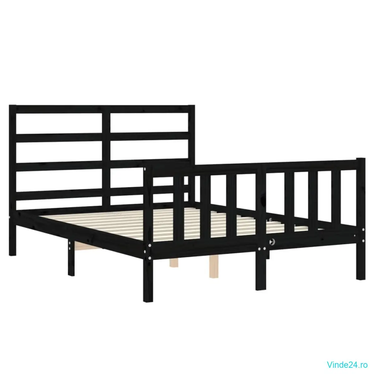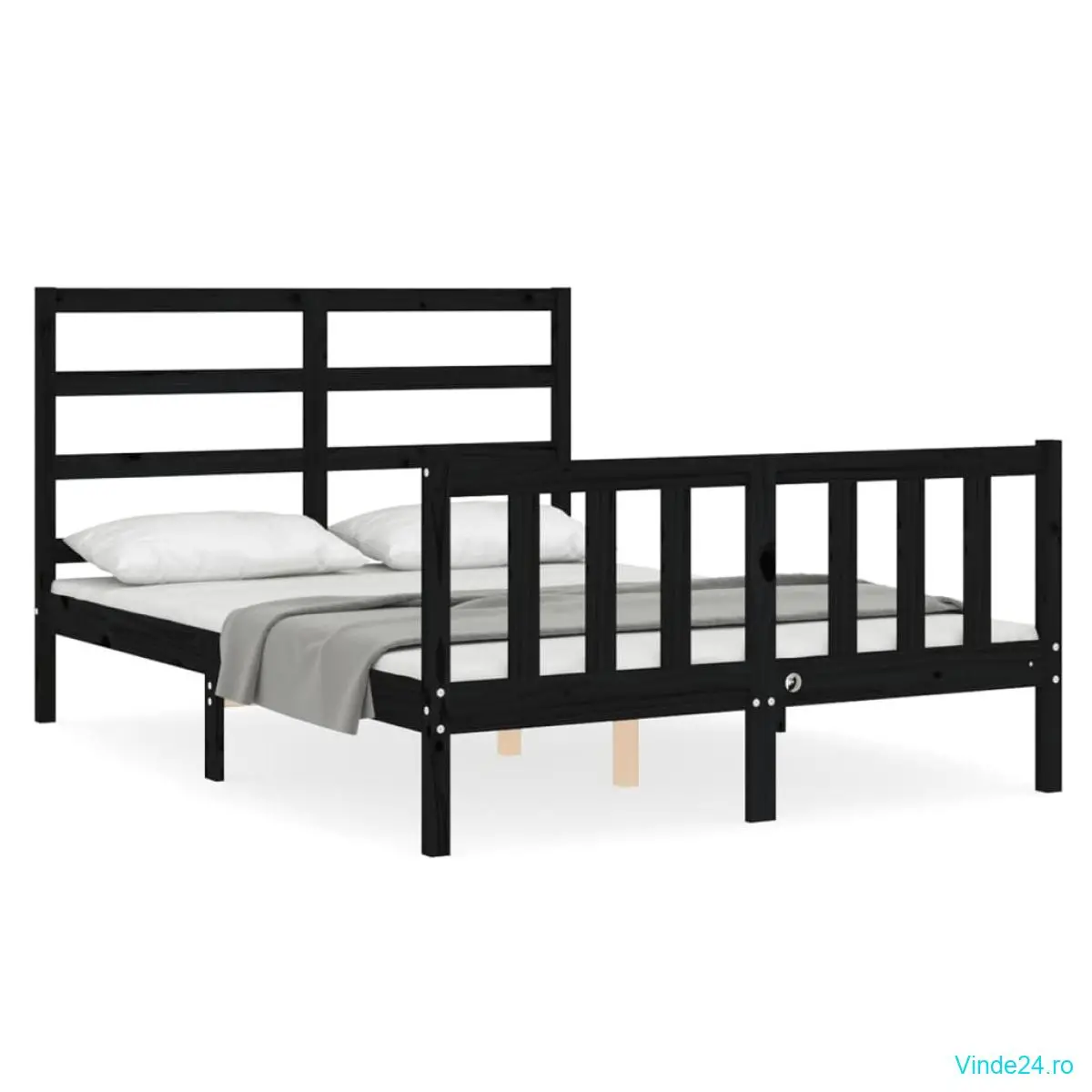 vidaXL Cadru de pat cu tăblie, negru, 140x190 cm, lemn masiv