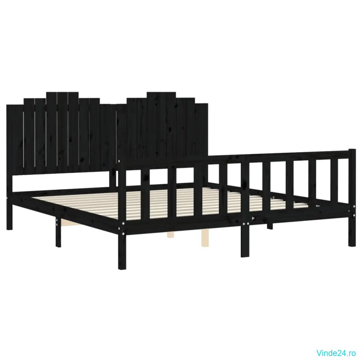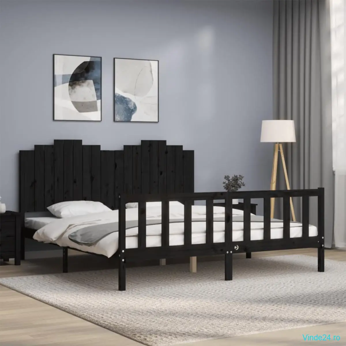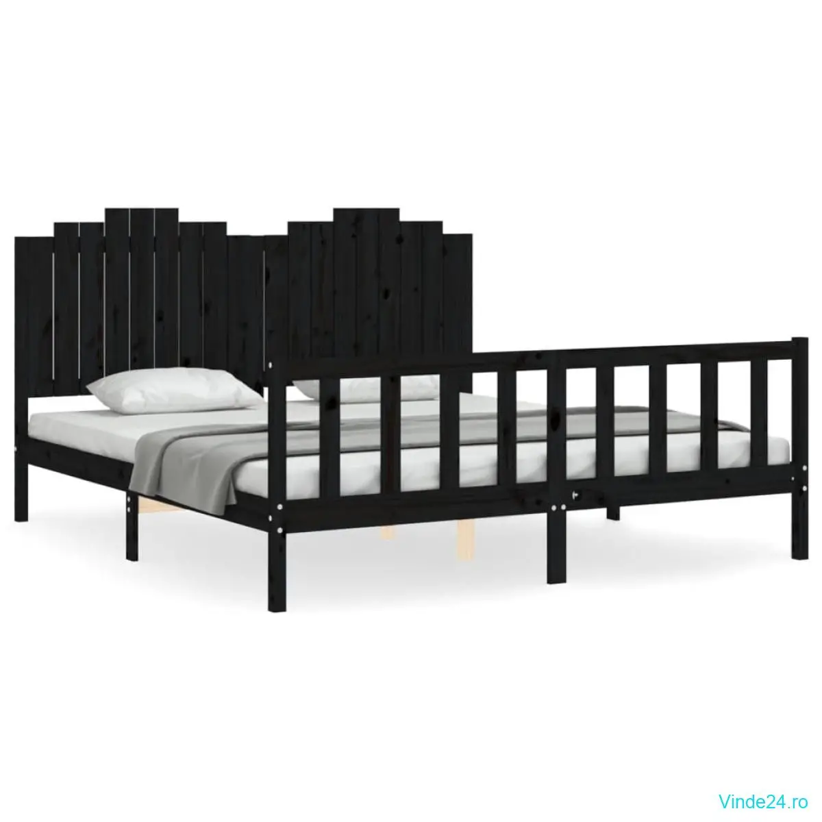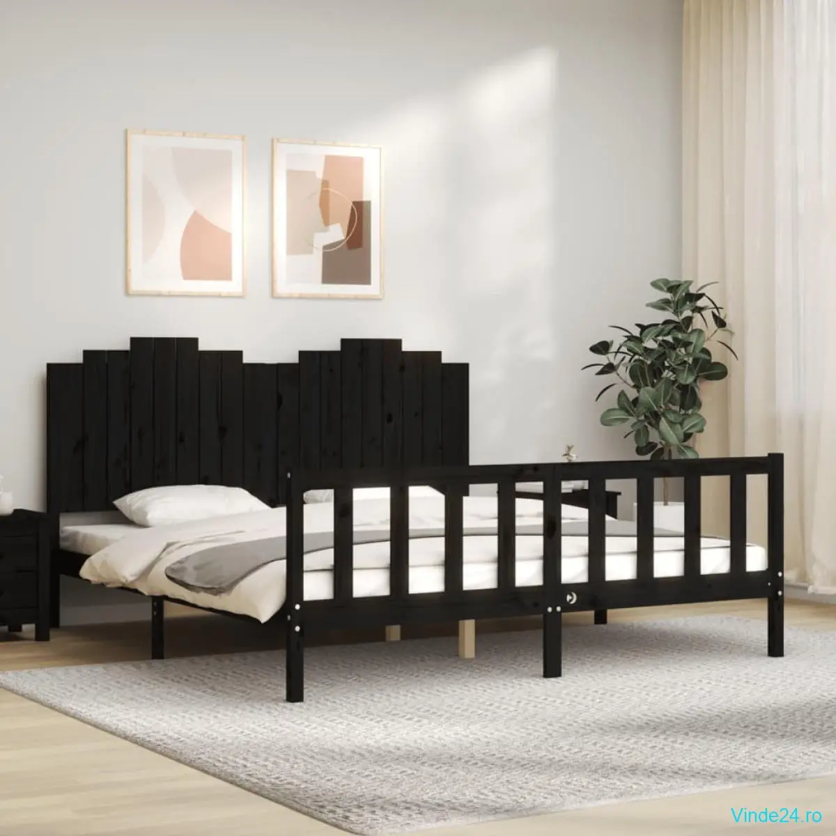 vidaXL Cadru de pat cu tăblie, negru, 180x200 cm, lemn masiv