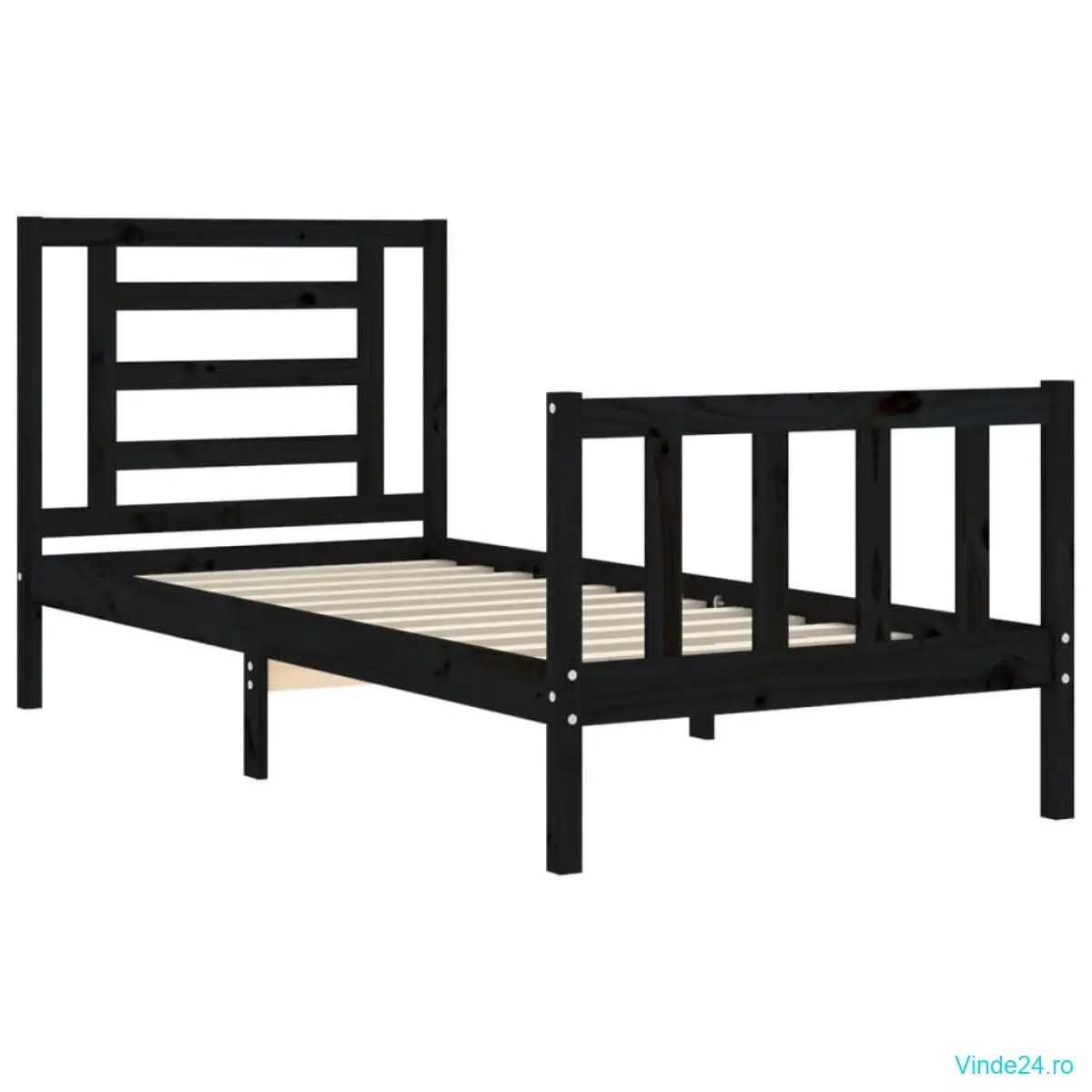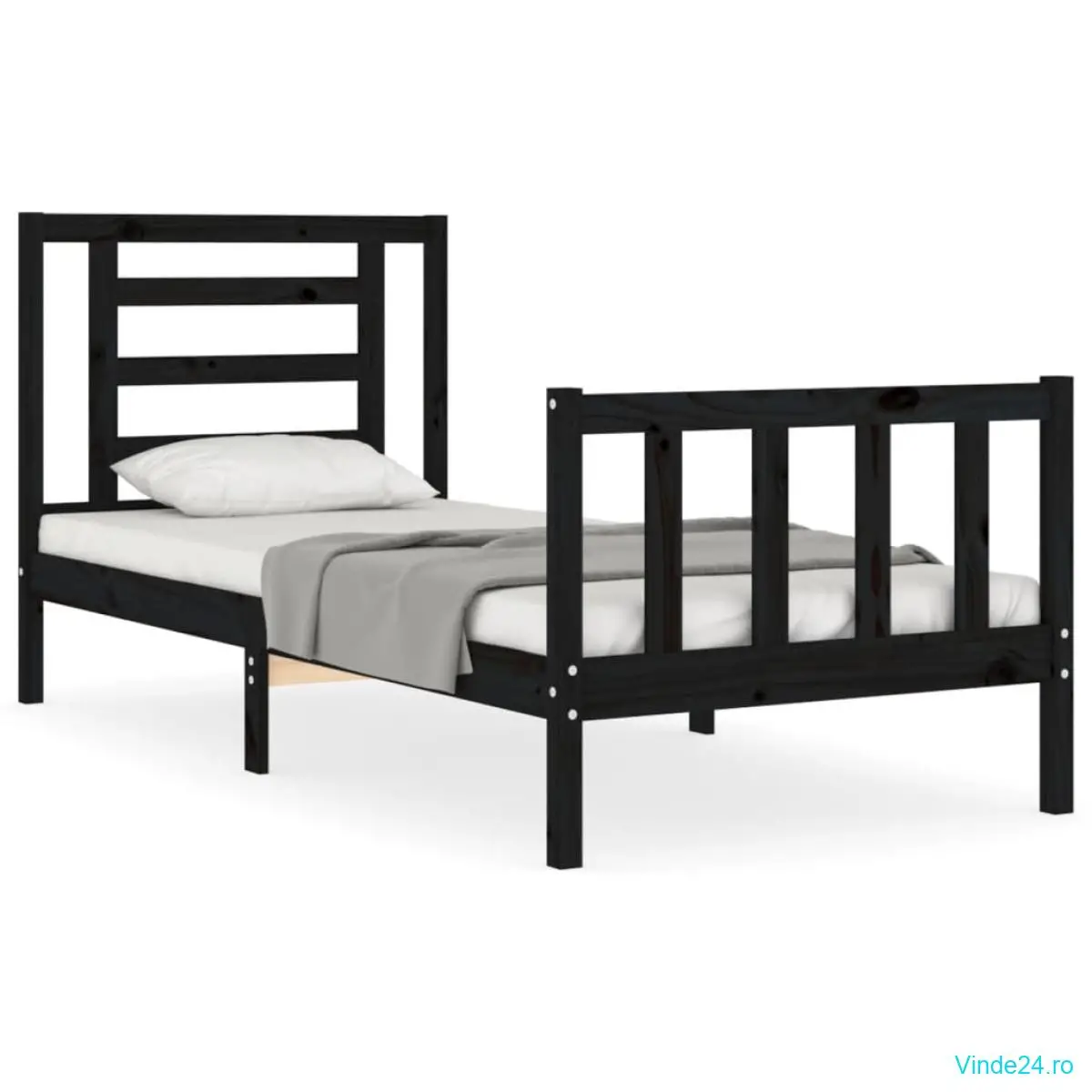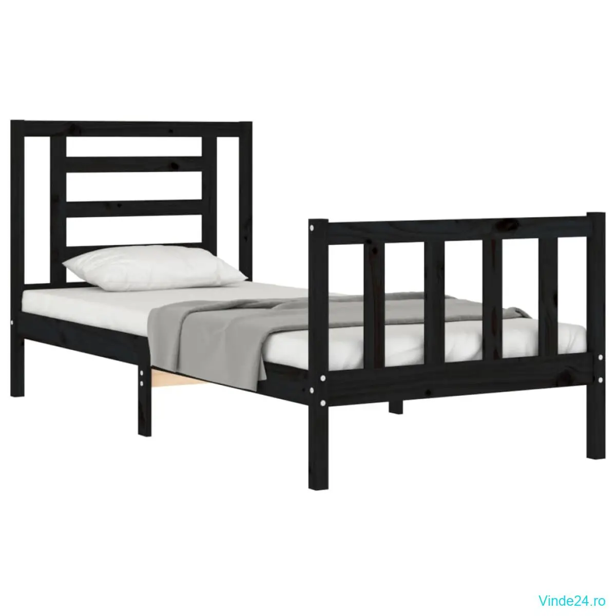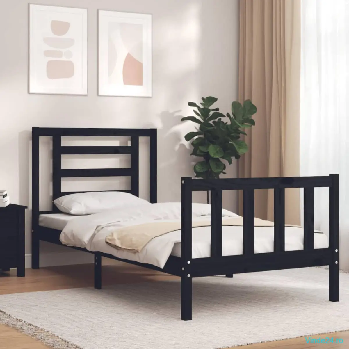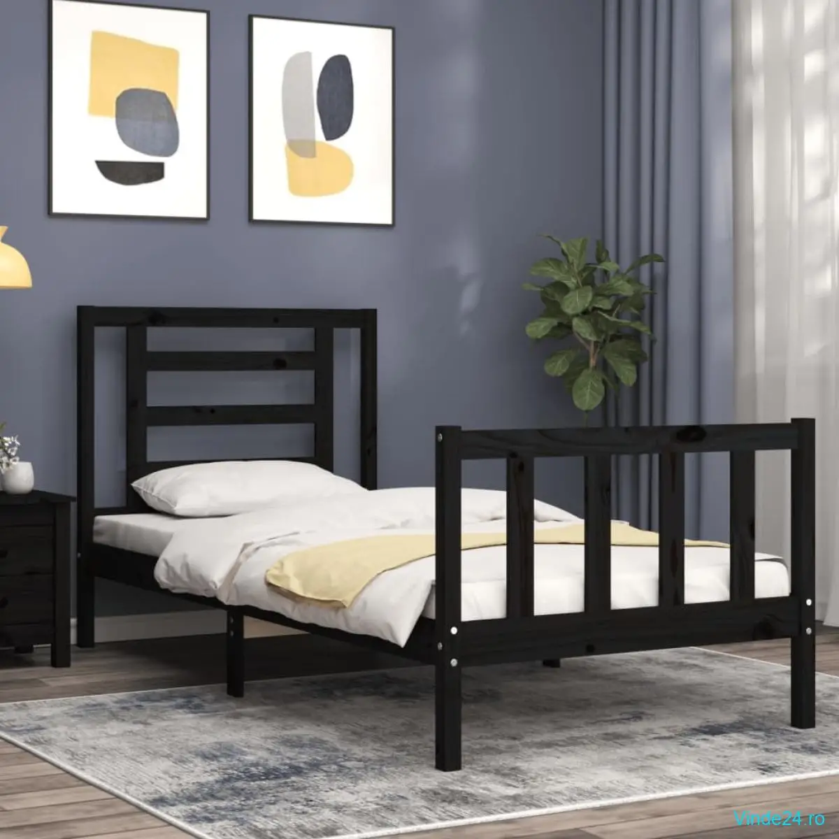 vidaXL Cadru de pat cu tăblie Small Single, negru, lemn masiv