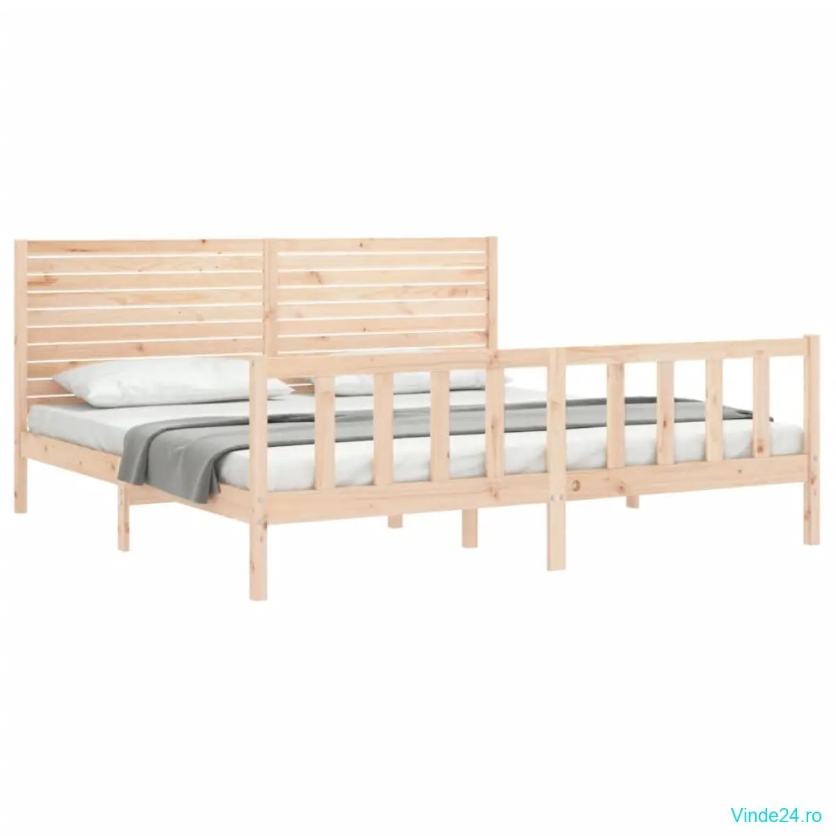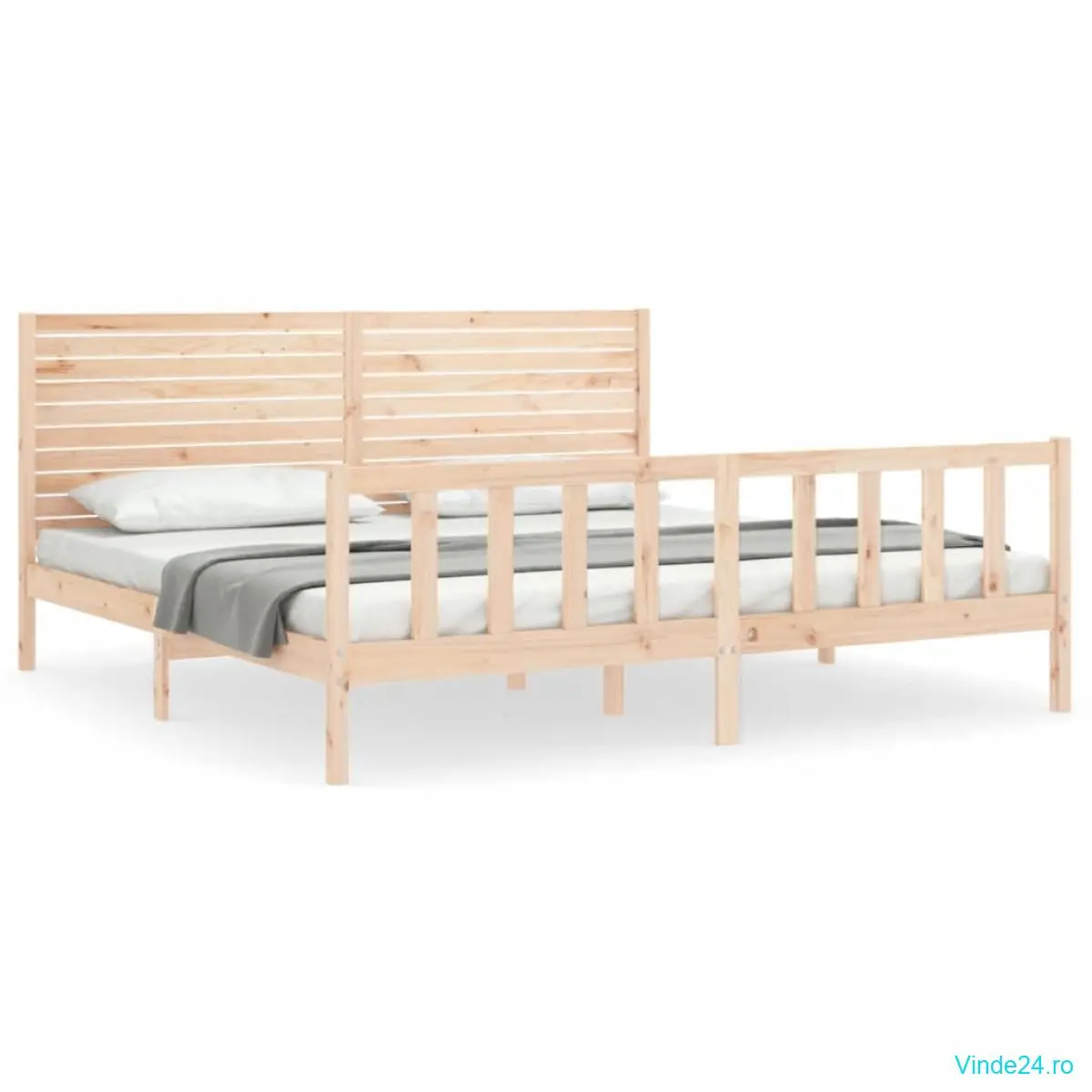 vidaXL Cadru de pat cu tăblie Super King Size, lemn masiv