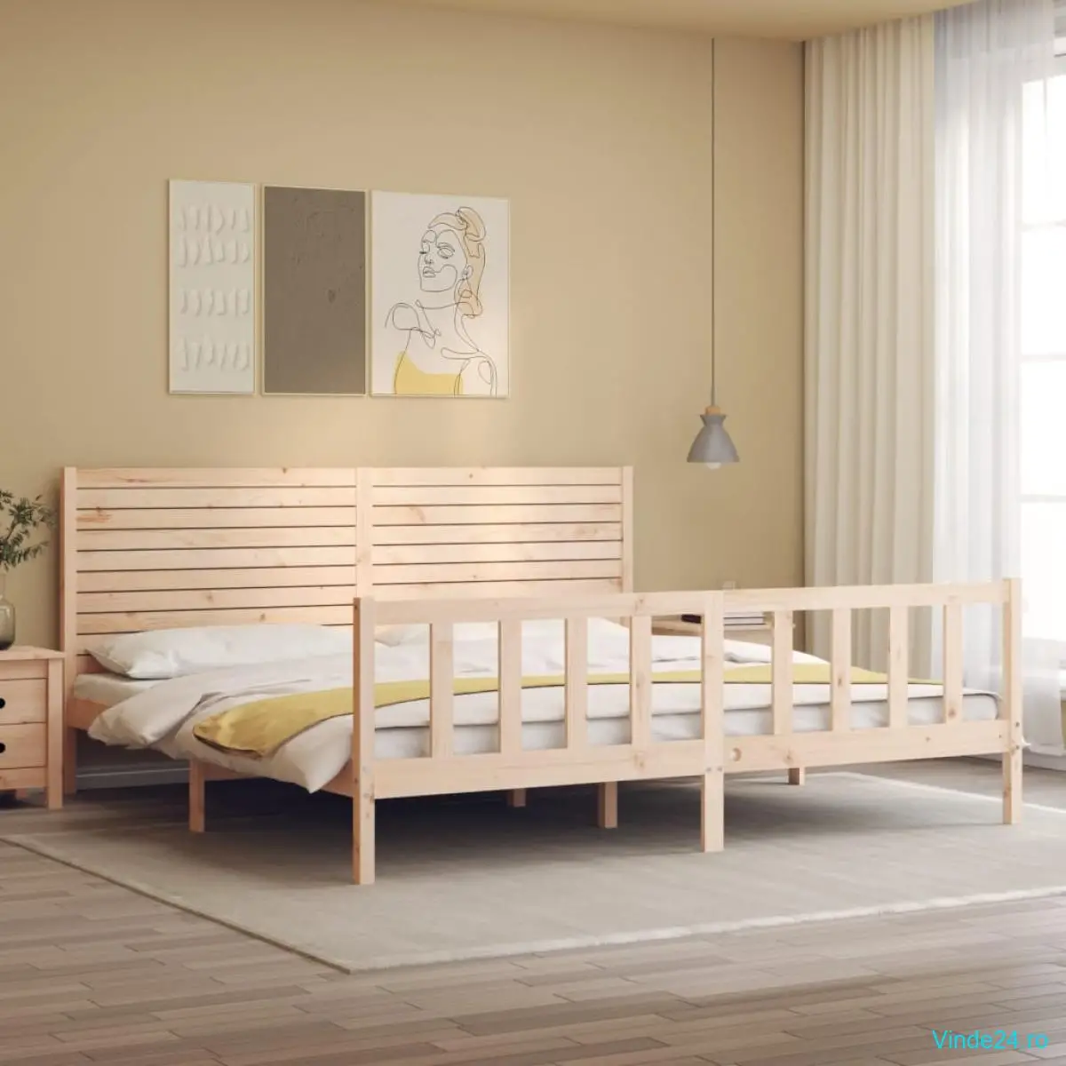 Bucurați-vă de un somn bun cu acest cadru de pat din lemn! Este o completare practică și decorativă pentru interiorul locuinței dvs.