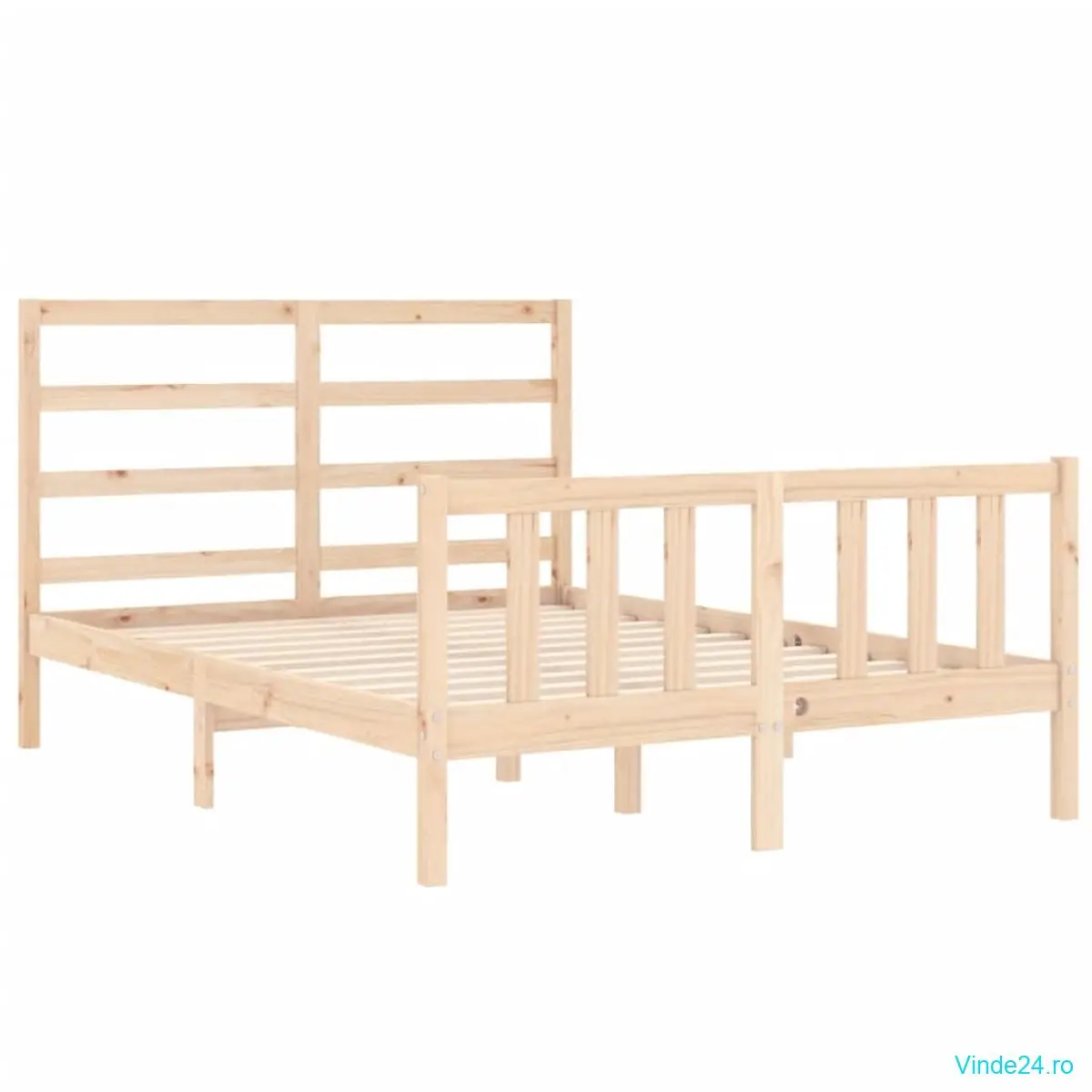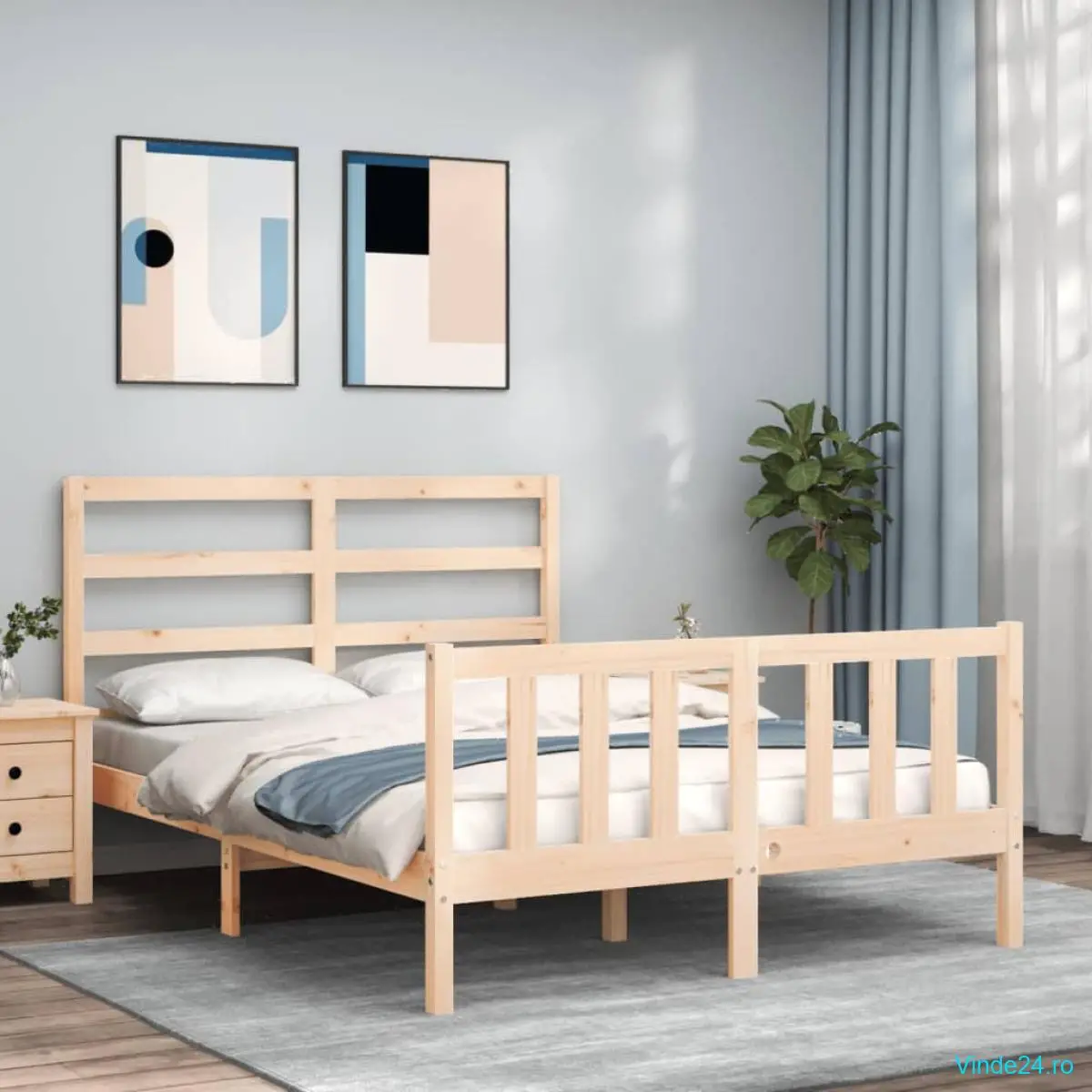vidaXL Cadru de pat cu tăblie dublu mic, lemn masiv