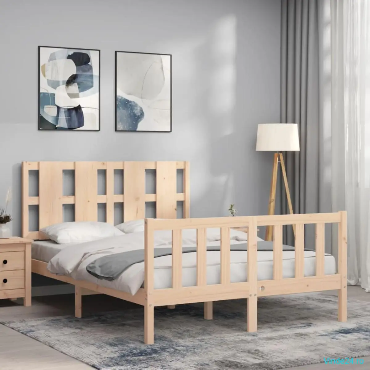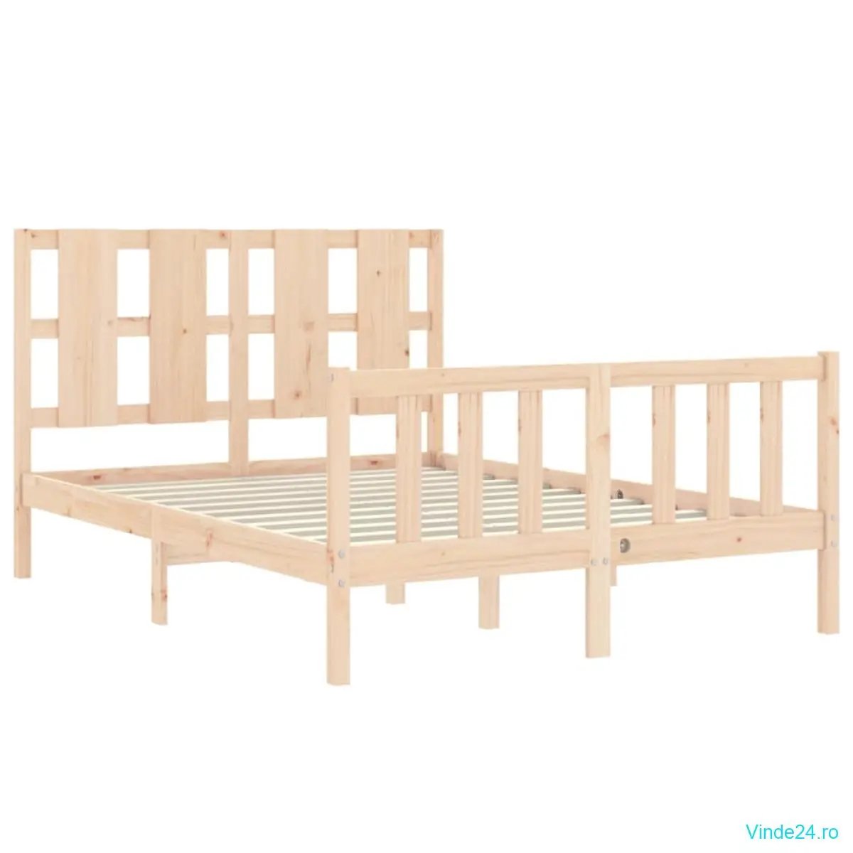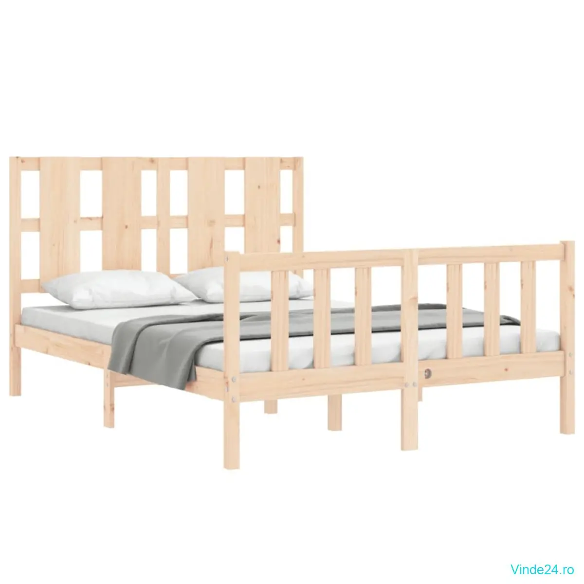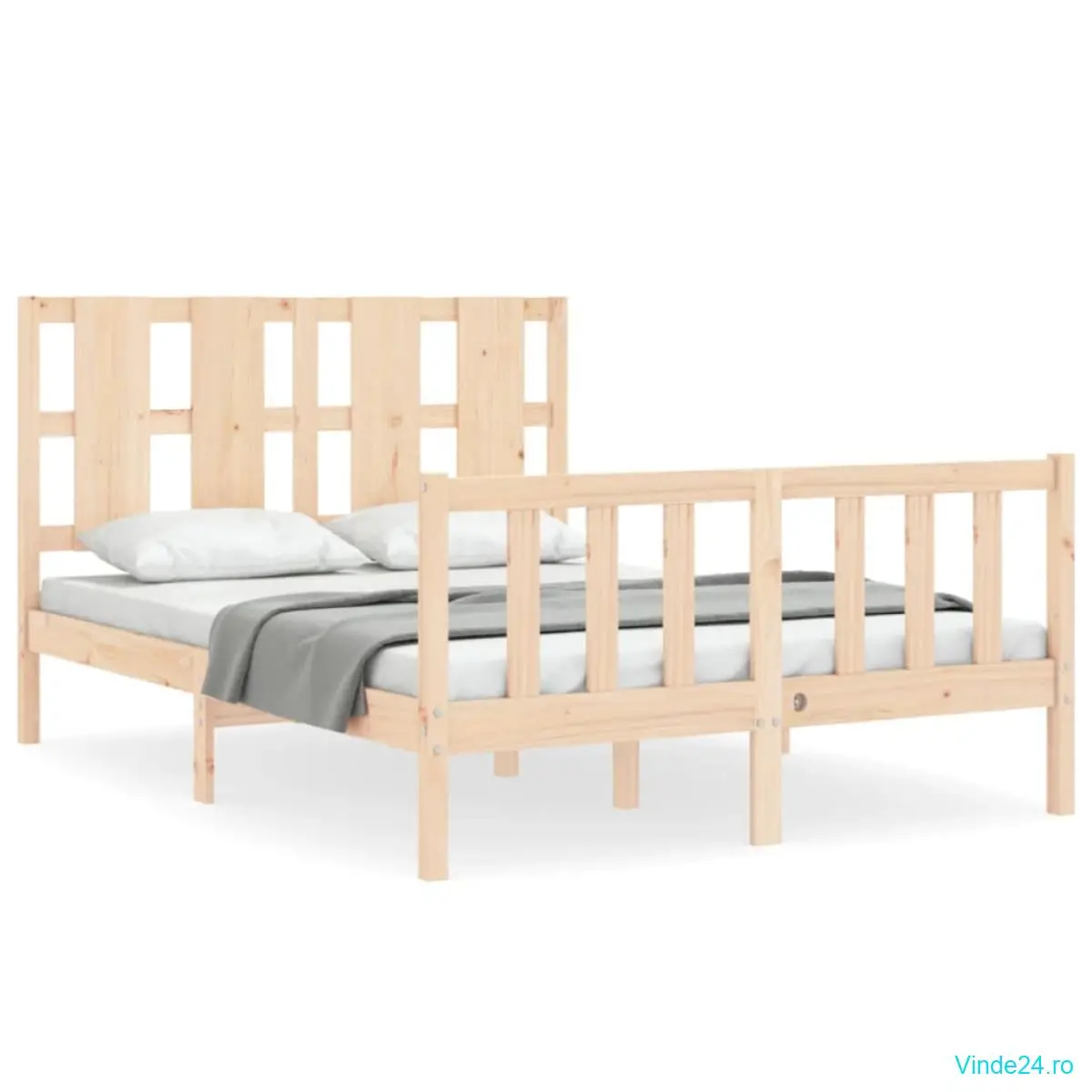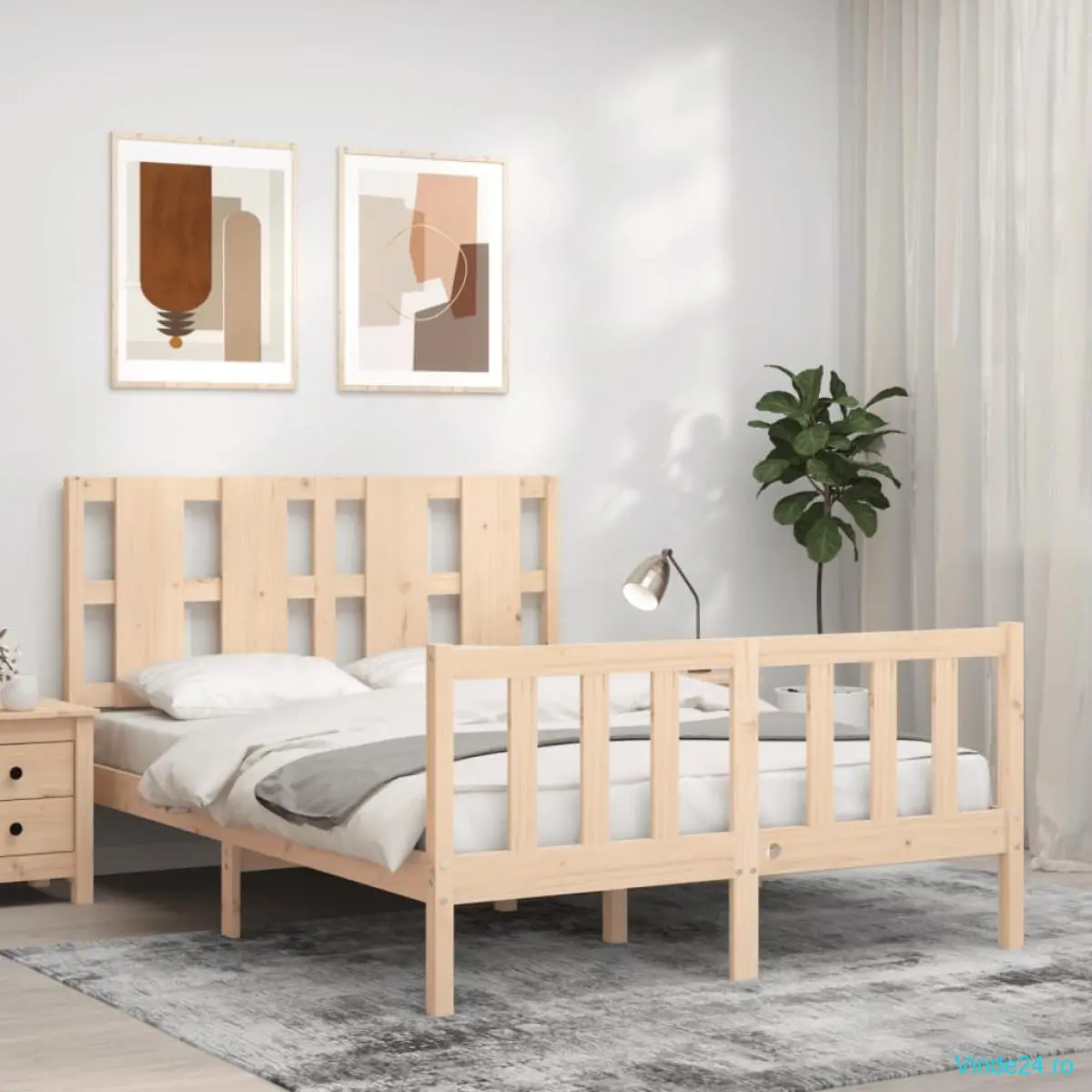 vidaXL Cadru de pat cu tăblie dublu mic, lemn masiv