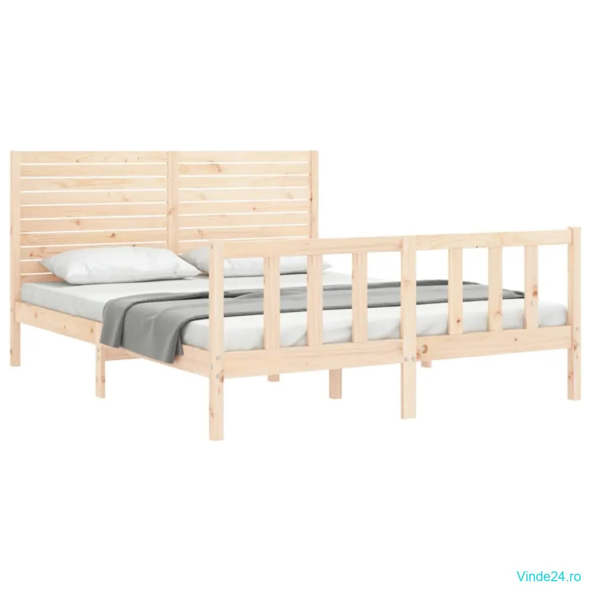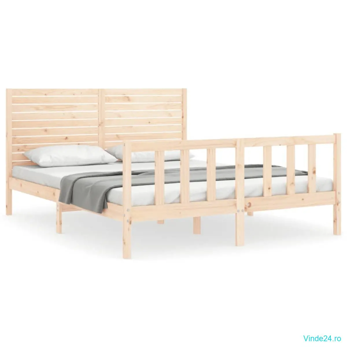 vidaXL Cadru de pat cu tăblie dublu mic, lemn masiv