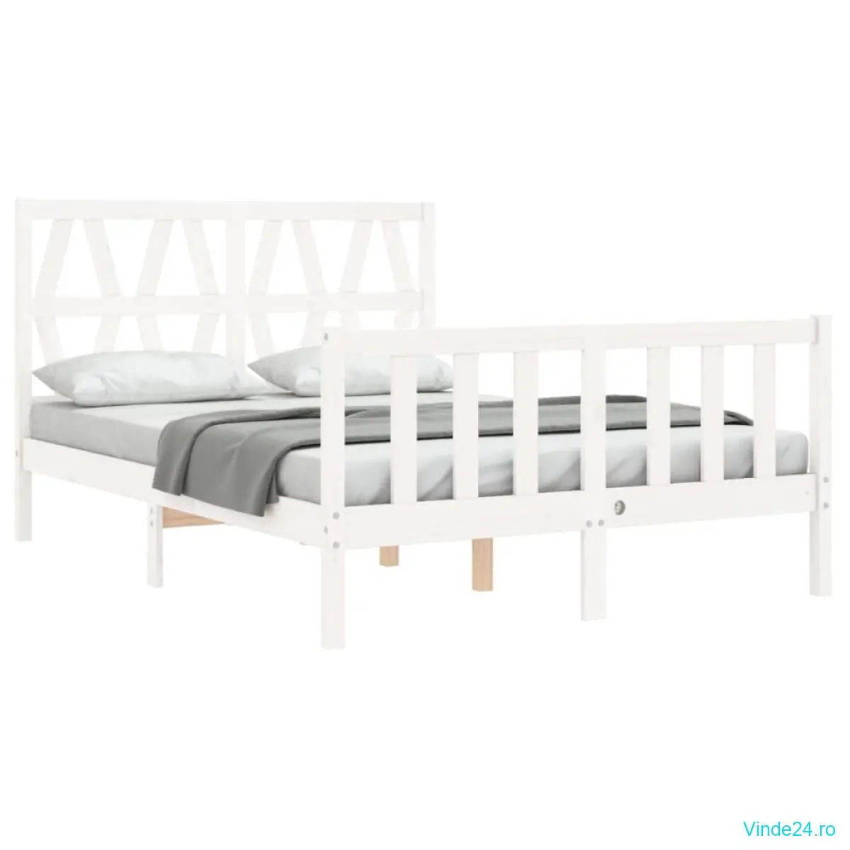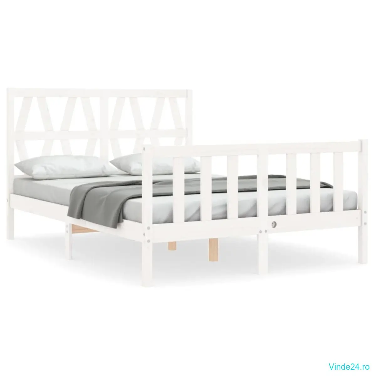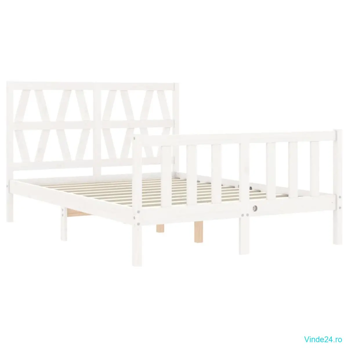 vidaXL Cadru de pat fără saltea, alb, 120x200 cm, lemn masiv pin