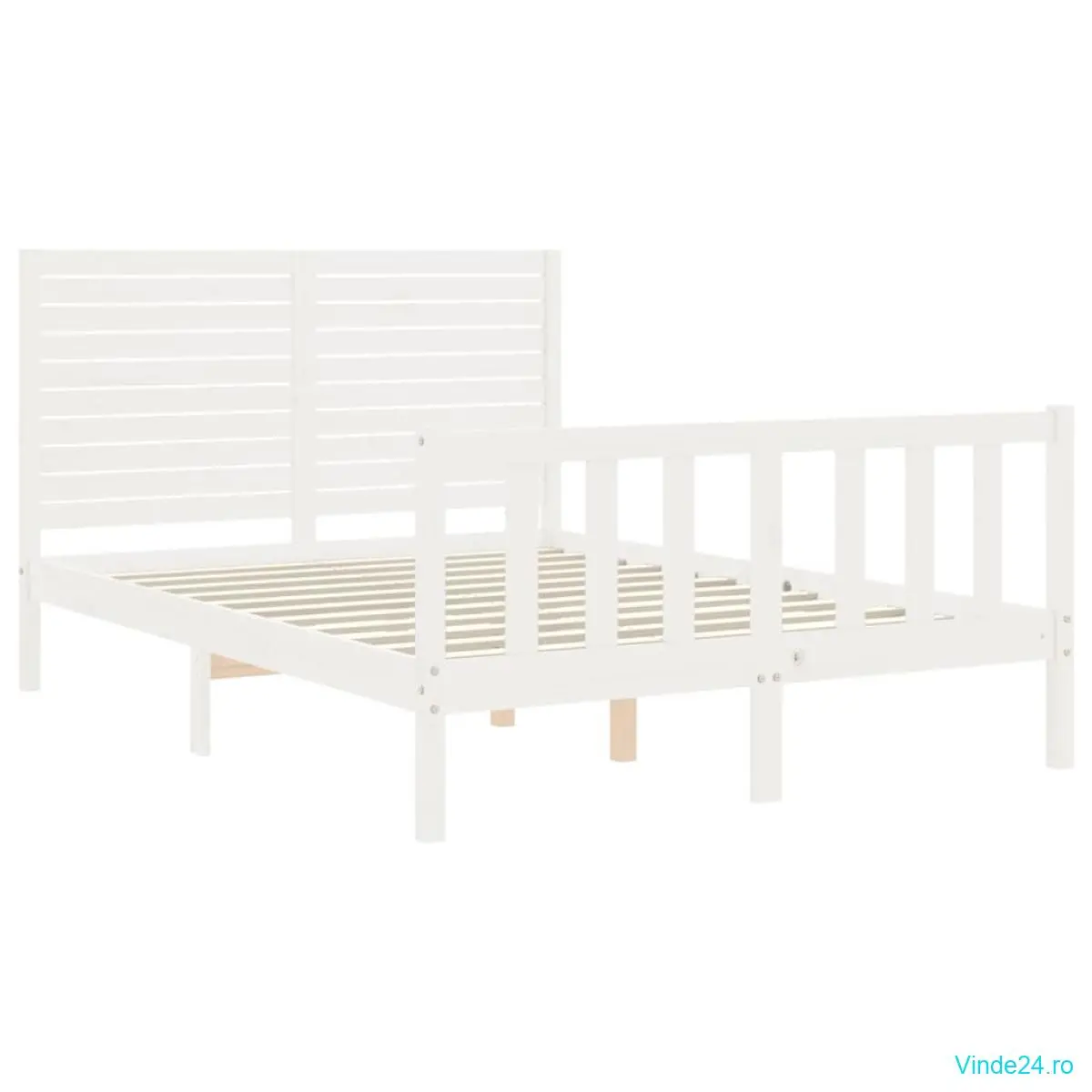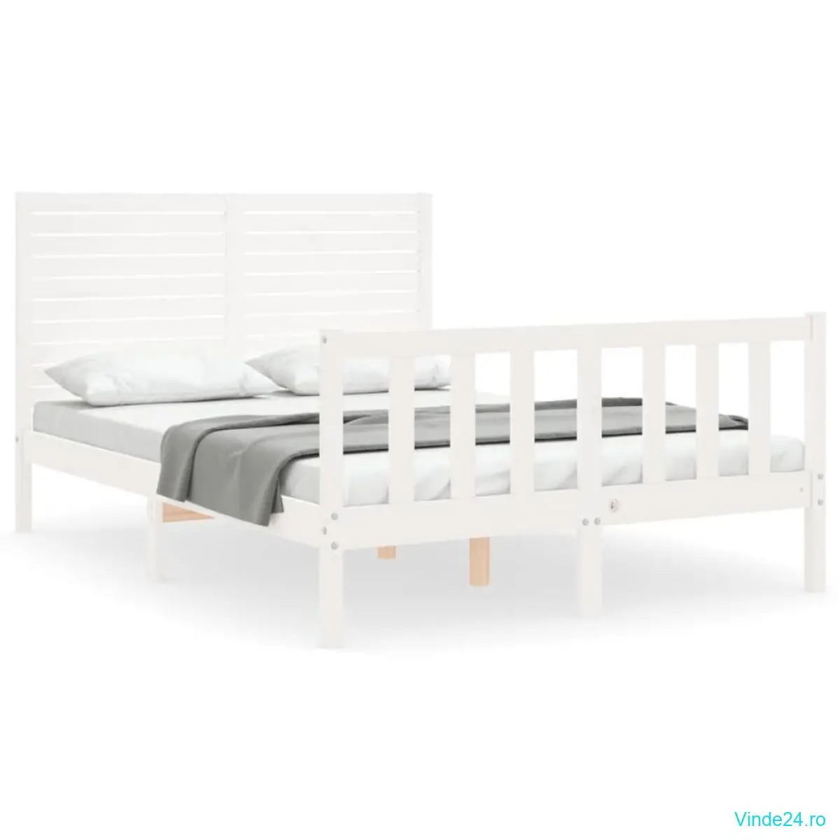 vidaXL Cadru de pat fără saltea, alb, 120x200 cm, lemn masiv pin