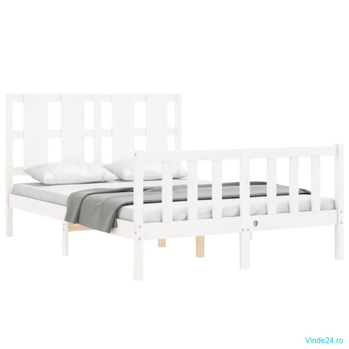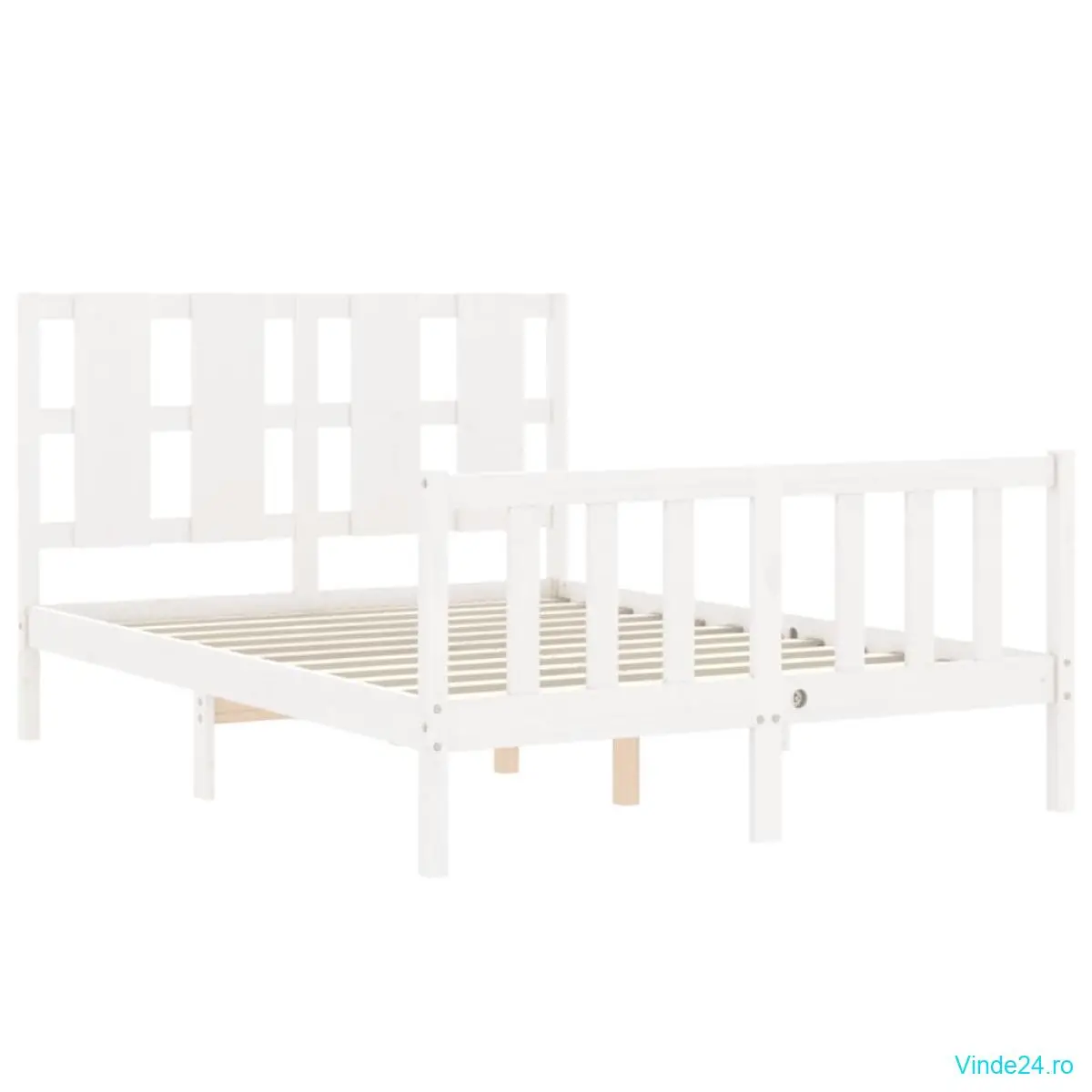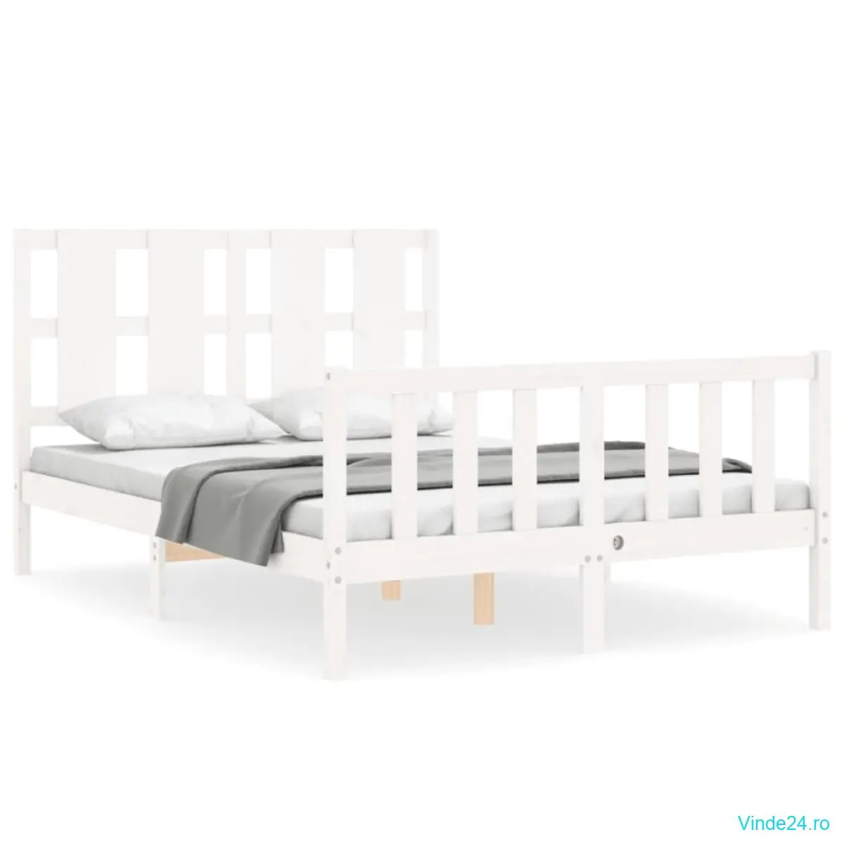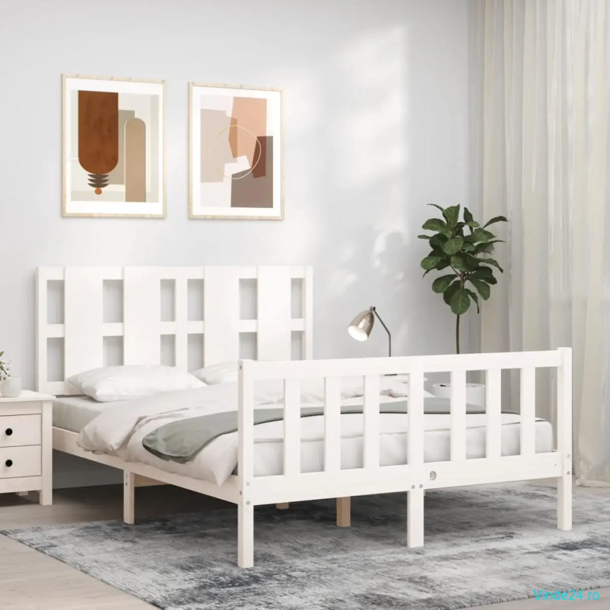 vidaXL Cadru de pat fără saltea, alb, 140x190 cm, lemn masiv de pin
