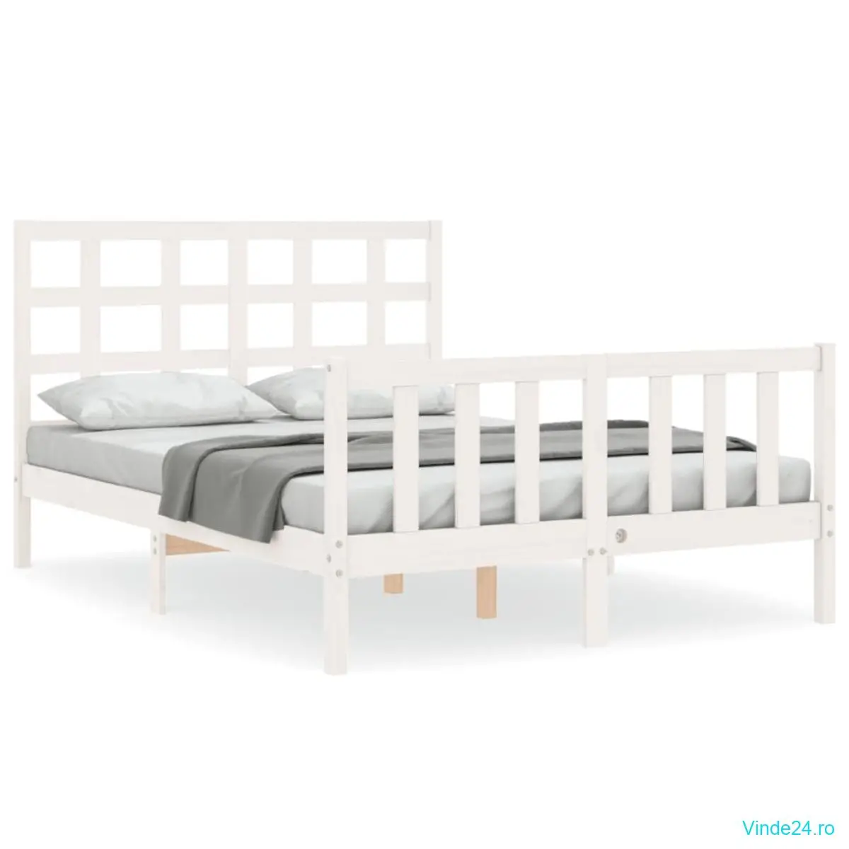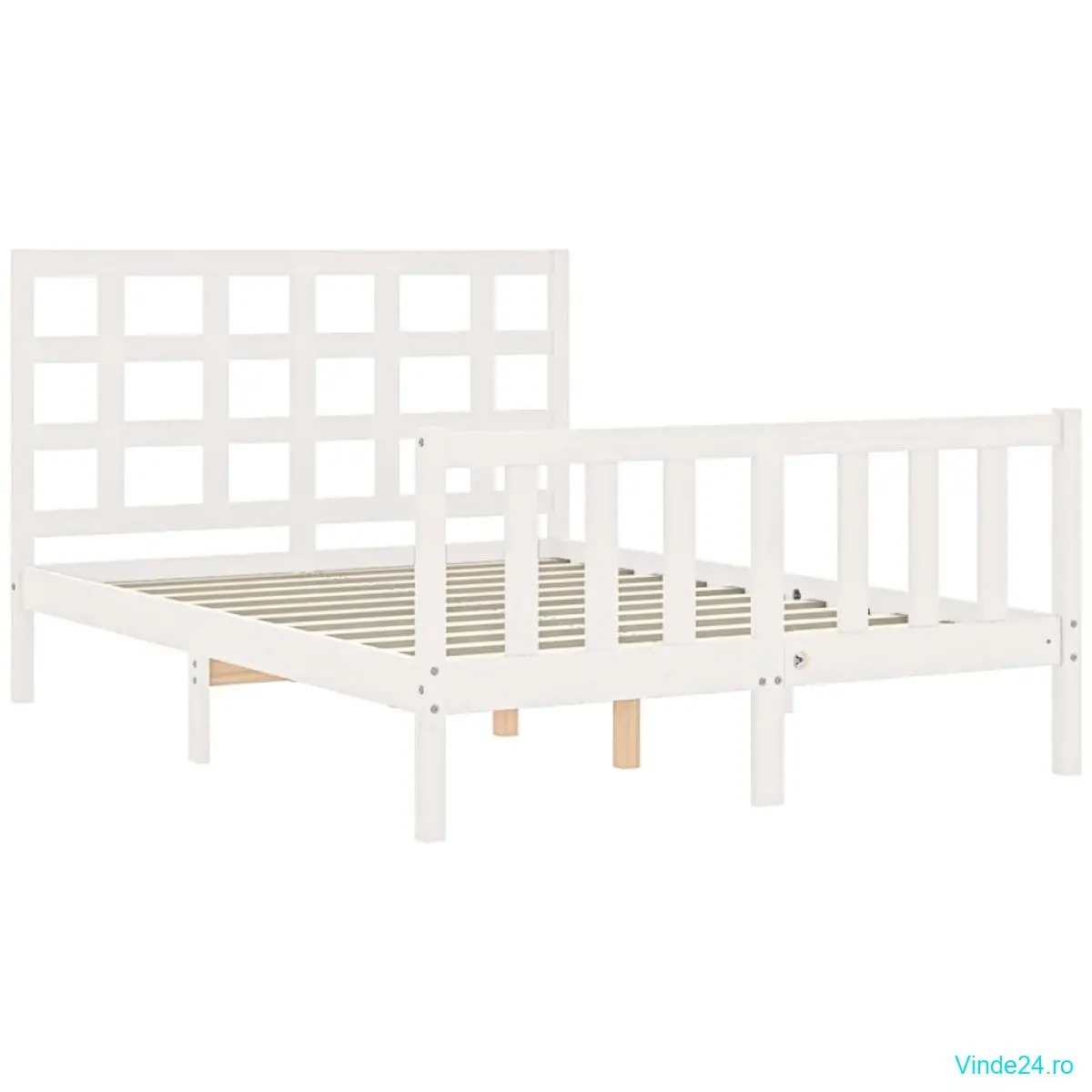 vidaXL Cadru de pat fără saltea, alb, 140x200 cm, lemn masiv pin