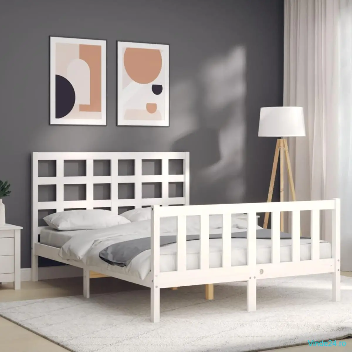 vidaXL Cadru de pat fără saltea, alb, 200x200 cm, lemn masiv pin